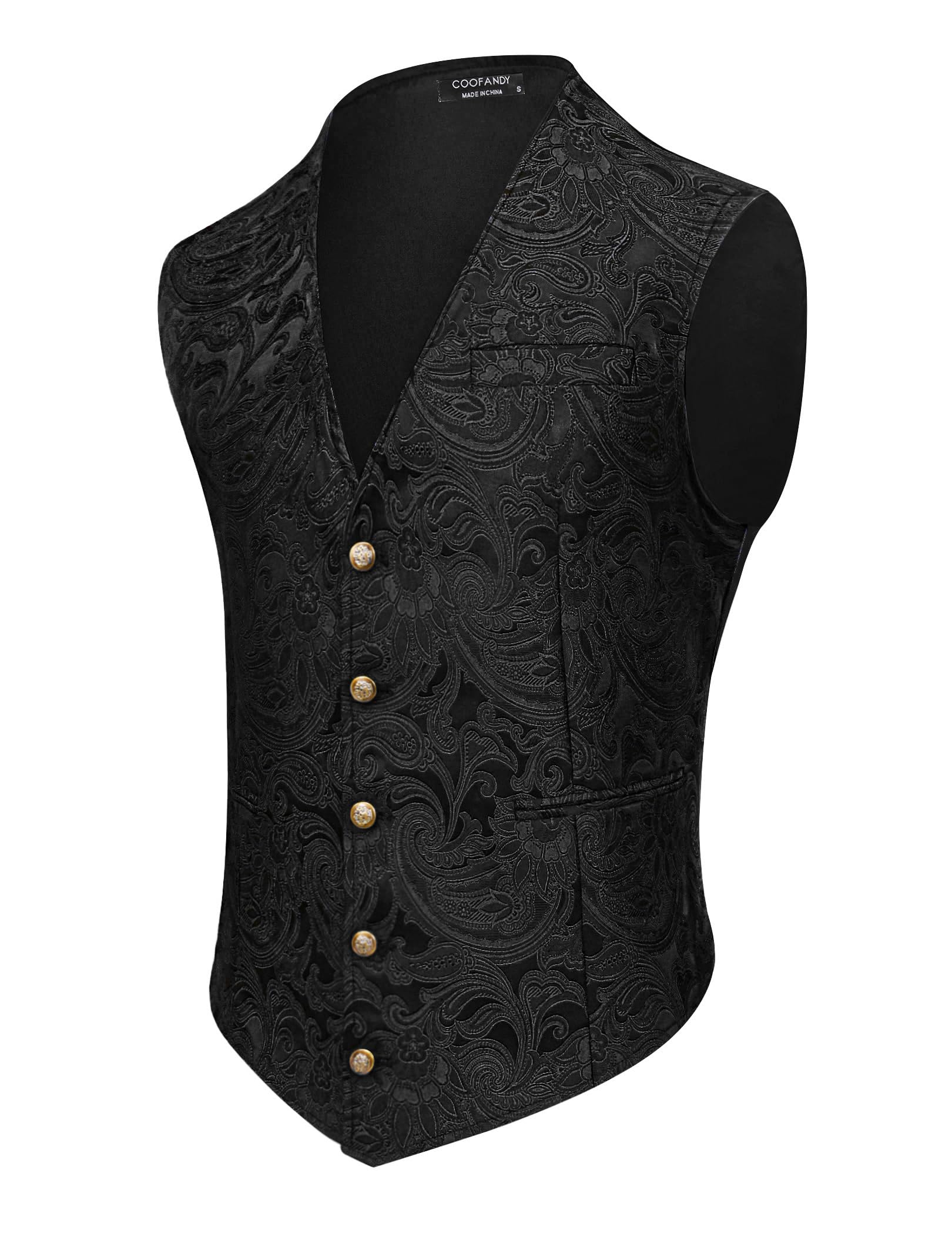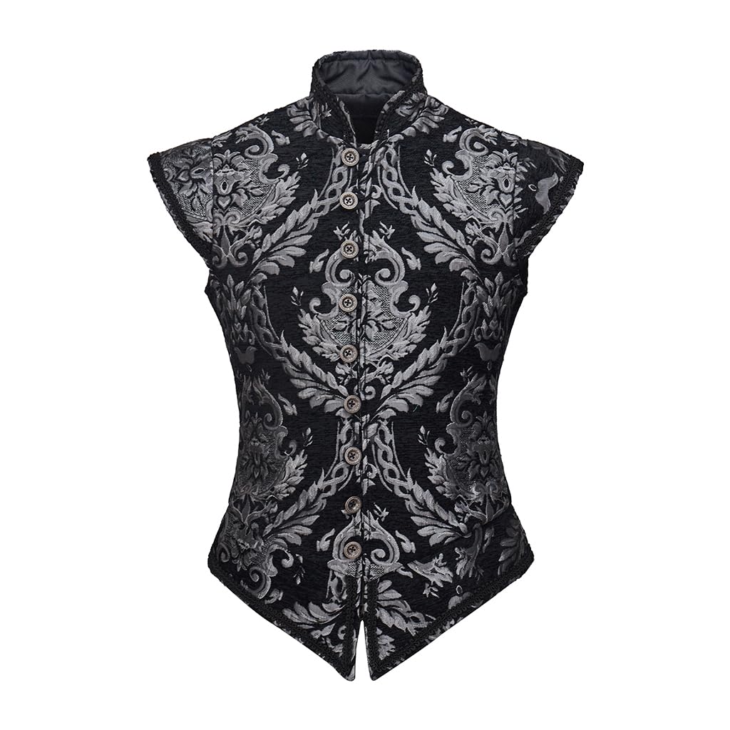 COMBACK Mens Victorian Gothic Suit Vest Steampunk Waistcoat (Large, Black).