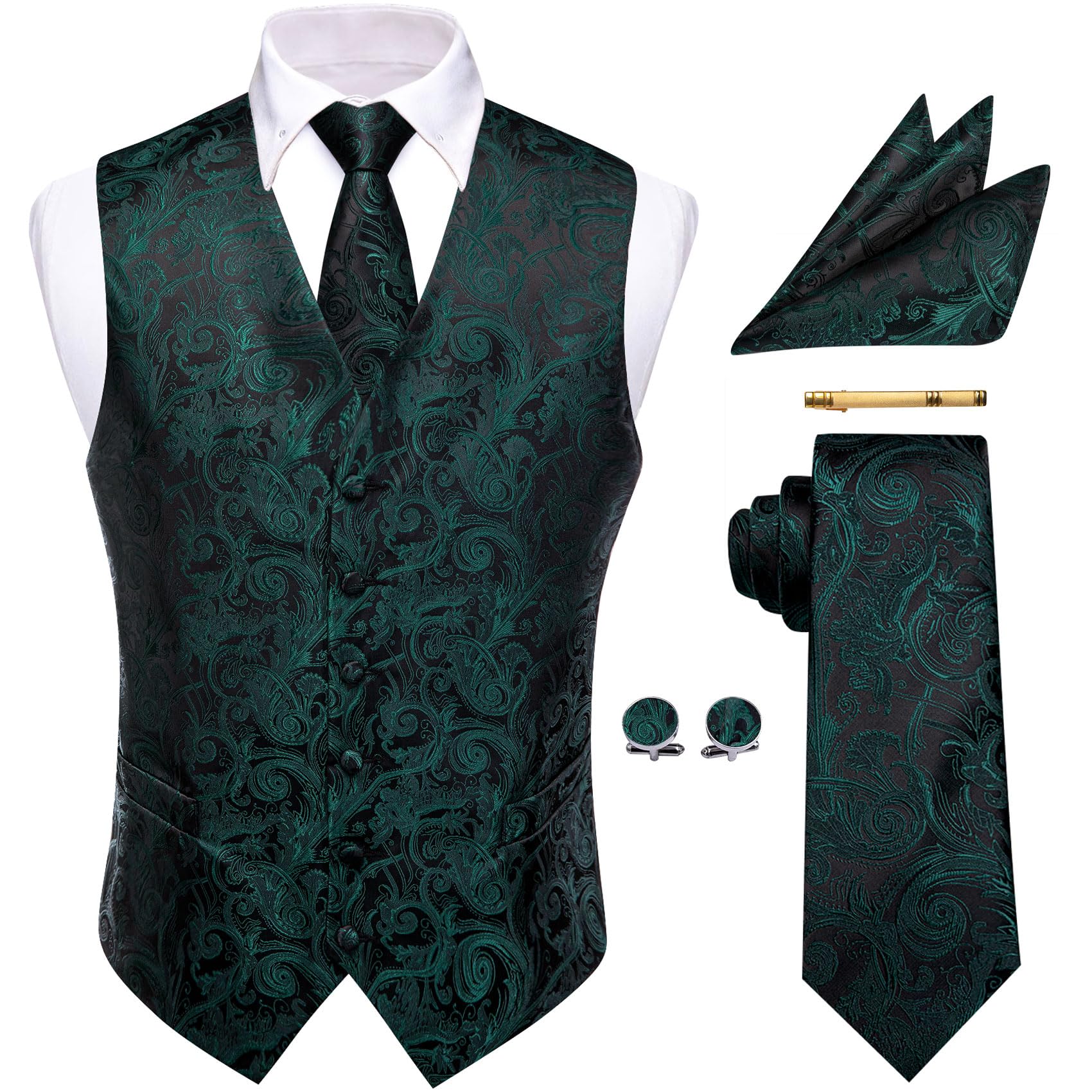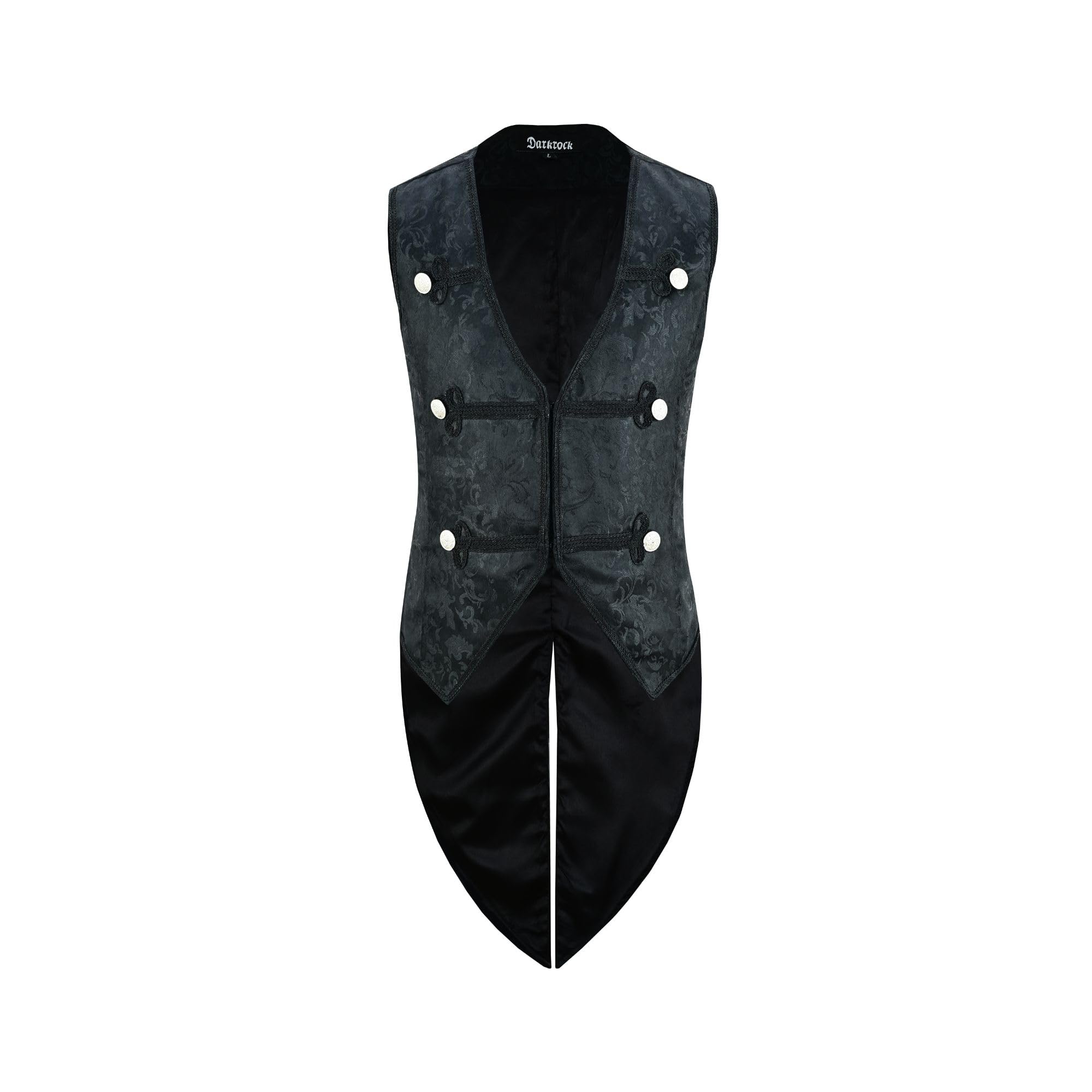 Darkrock Mens Victorian Suit Vest Steampunk Gothic Waistcoat (5XL, Black)