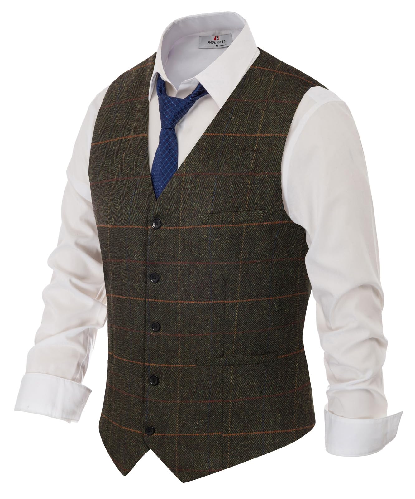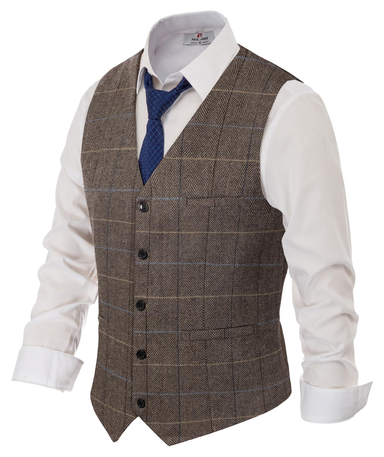 PJ PAUL JONES Men's Herringbone Tweed Suit Vest Casual Wool Blend Waistcoat
