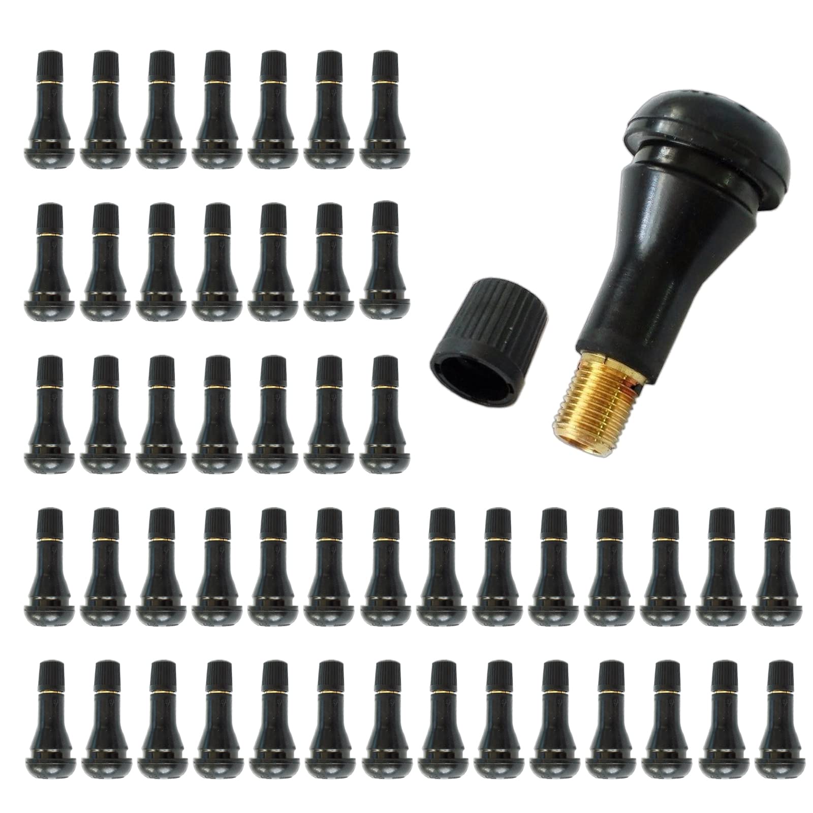 Fekuar 50Pcs TR413 Snap-in Tire Valve Stems Short Black Rubber Valve TR 413