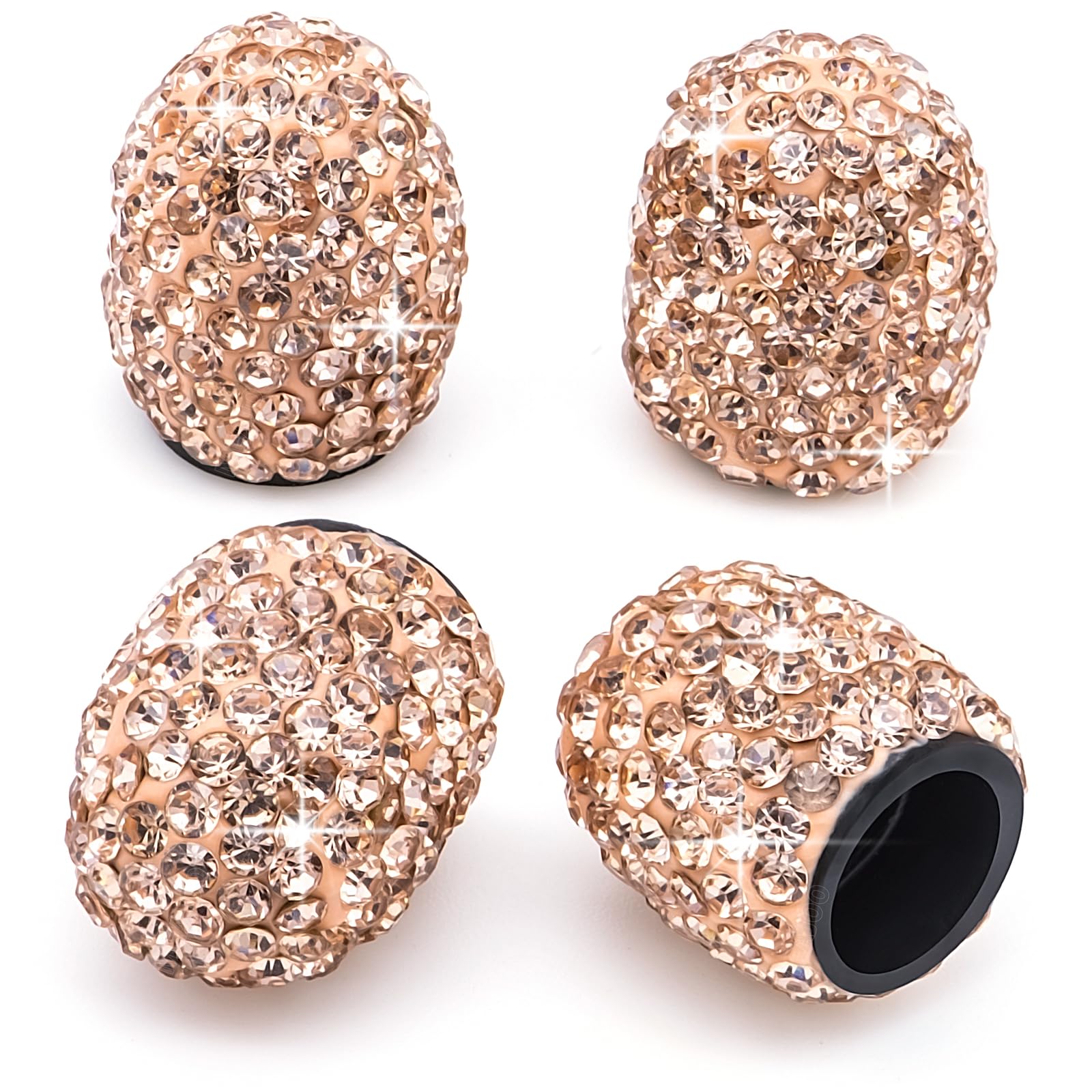 HZJD Tire Valve Stem Caps, Handmade Crystal Rhinestone, Red(4 Pack)