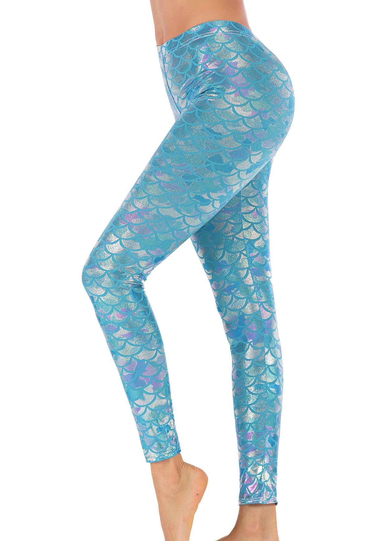 Alaroo Halloween Shiny Fish Scale Mermaid Leggings for Women Pants M