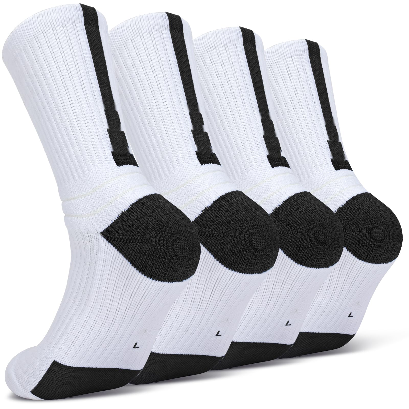 SITOISBE Cushioned Compression Unisex Mid-crew Socks 4-Pack, Large, Black