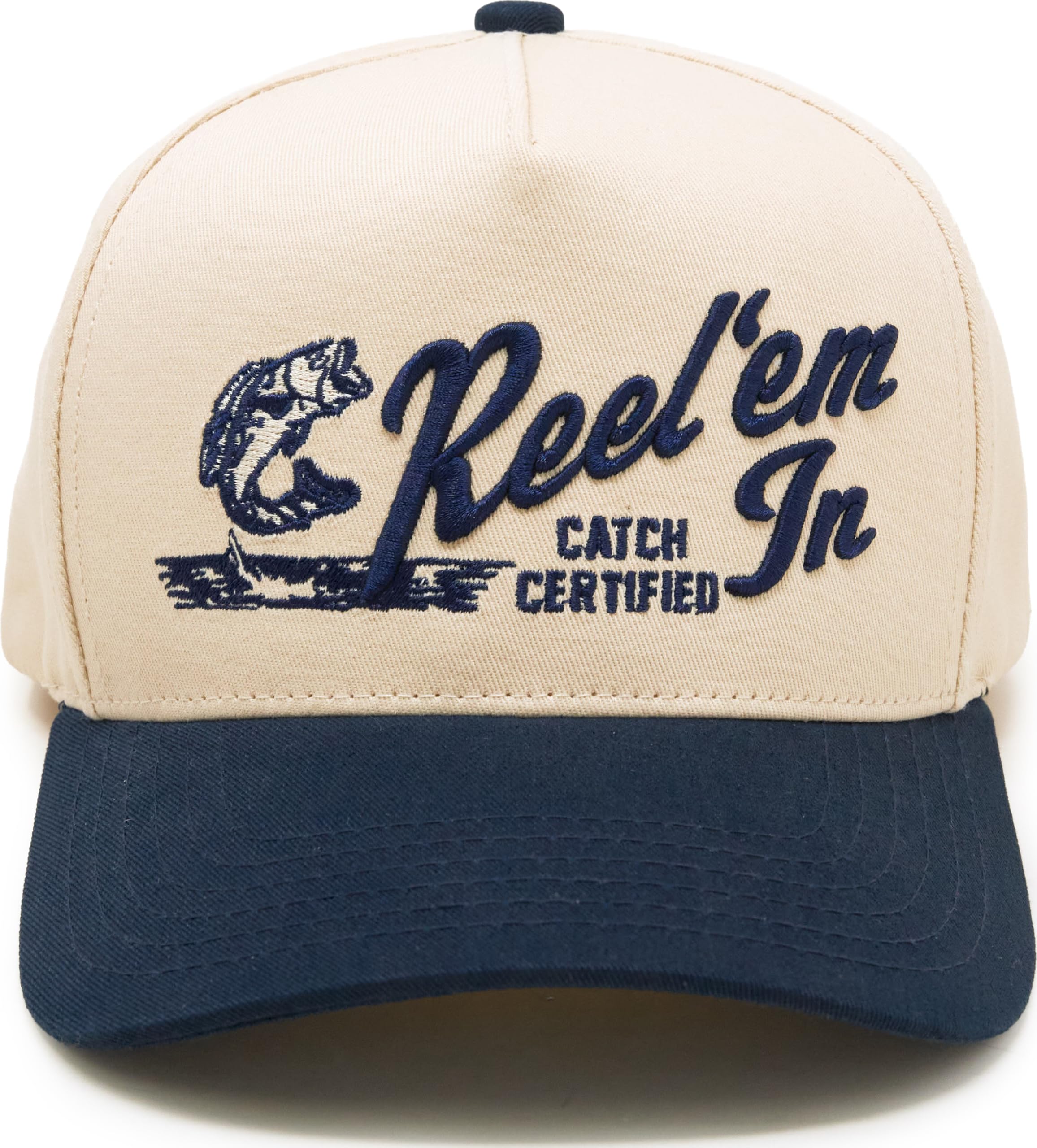 Two Tone Vintage Snapback Hat - Reel 'Em in - Navy/Beige