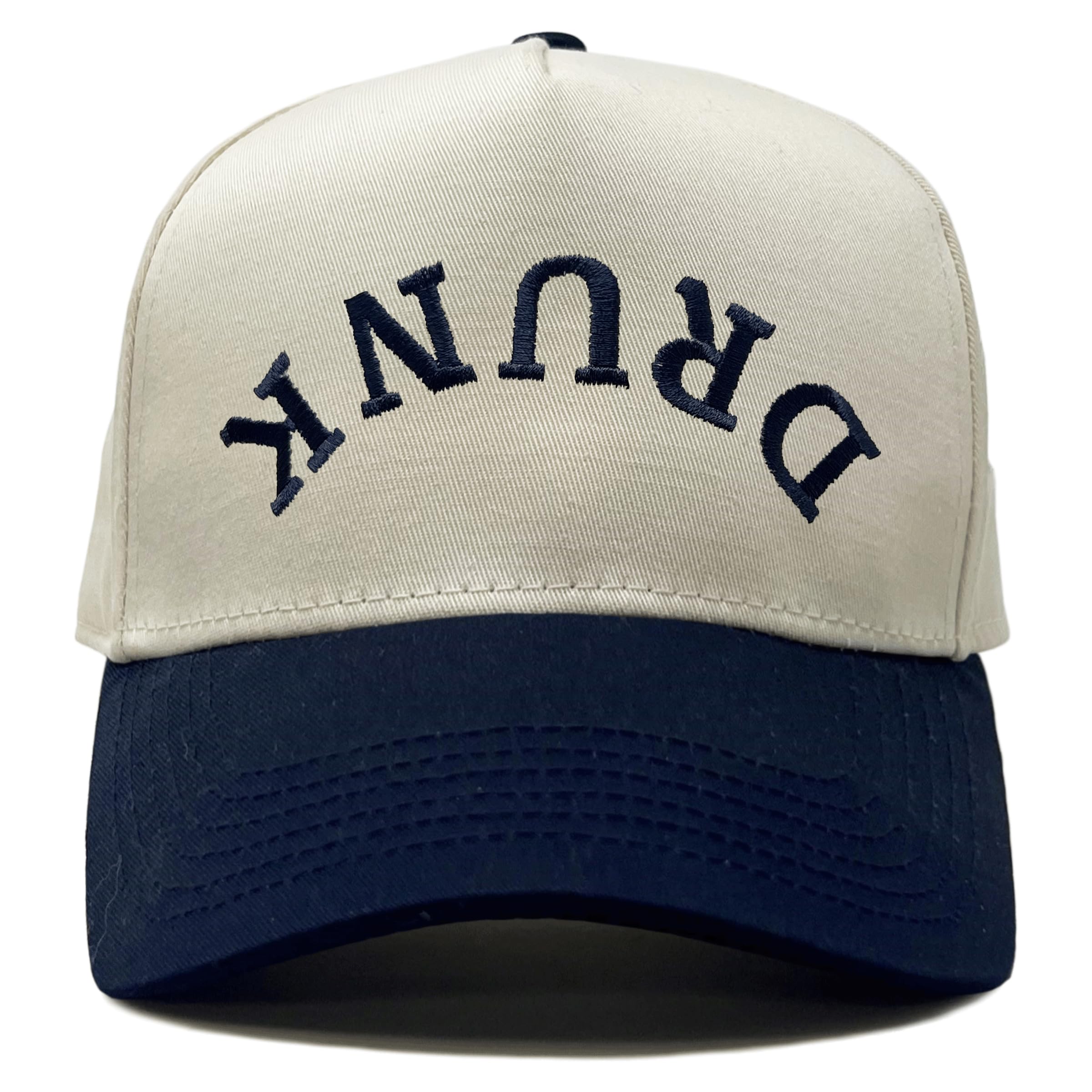 Two Tone Vintage Snapback Hat - Drunk (Upside Down) - Navy/Beige