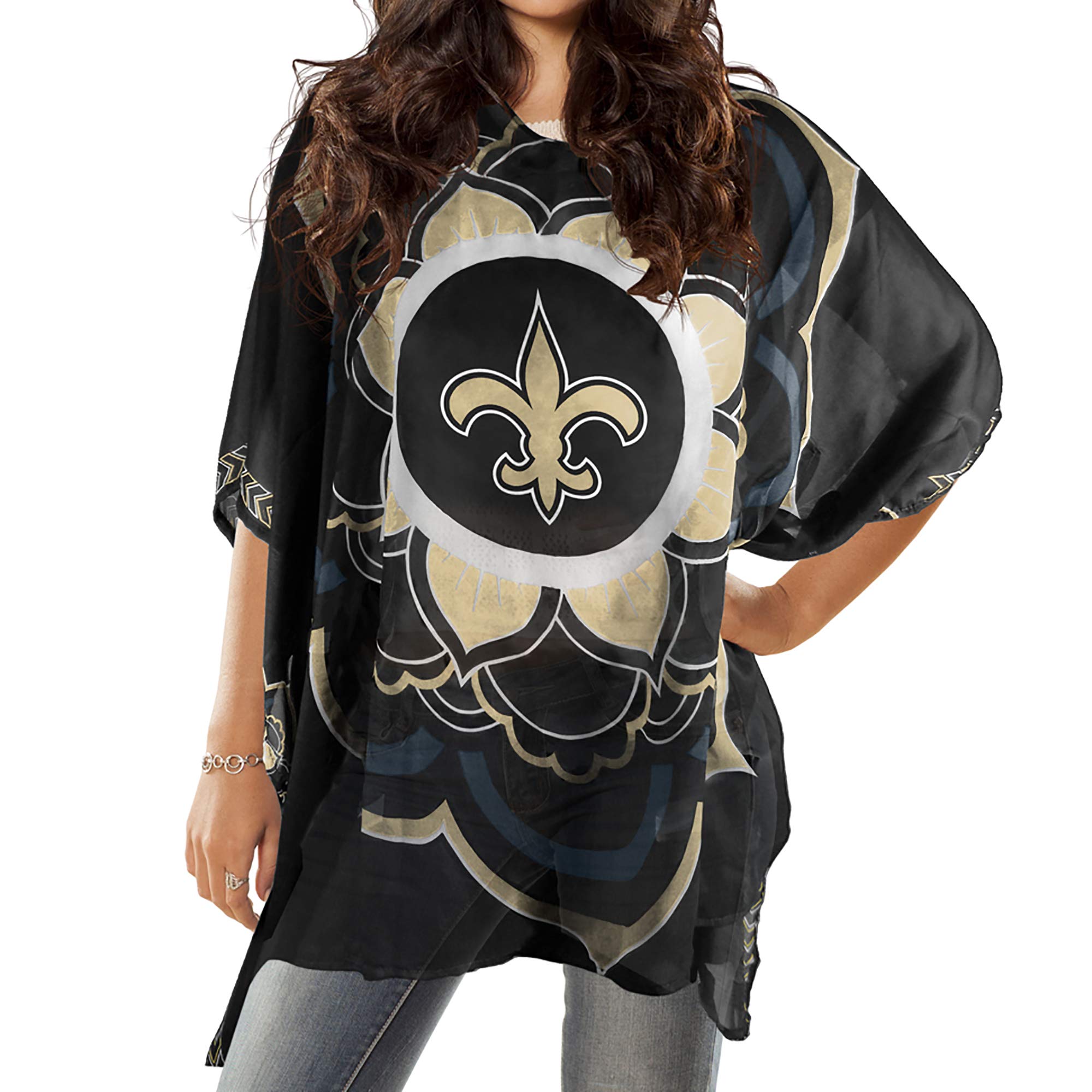 Littlearth New Orleans Saints NFL Sheer Caftan with Flower Design