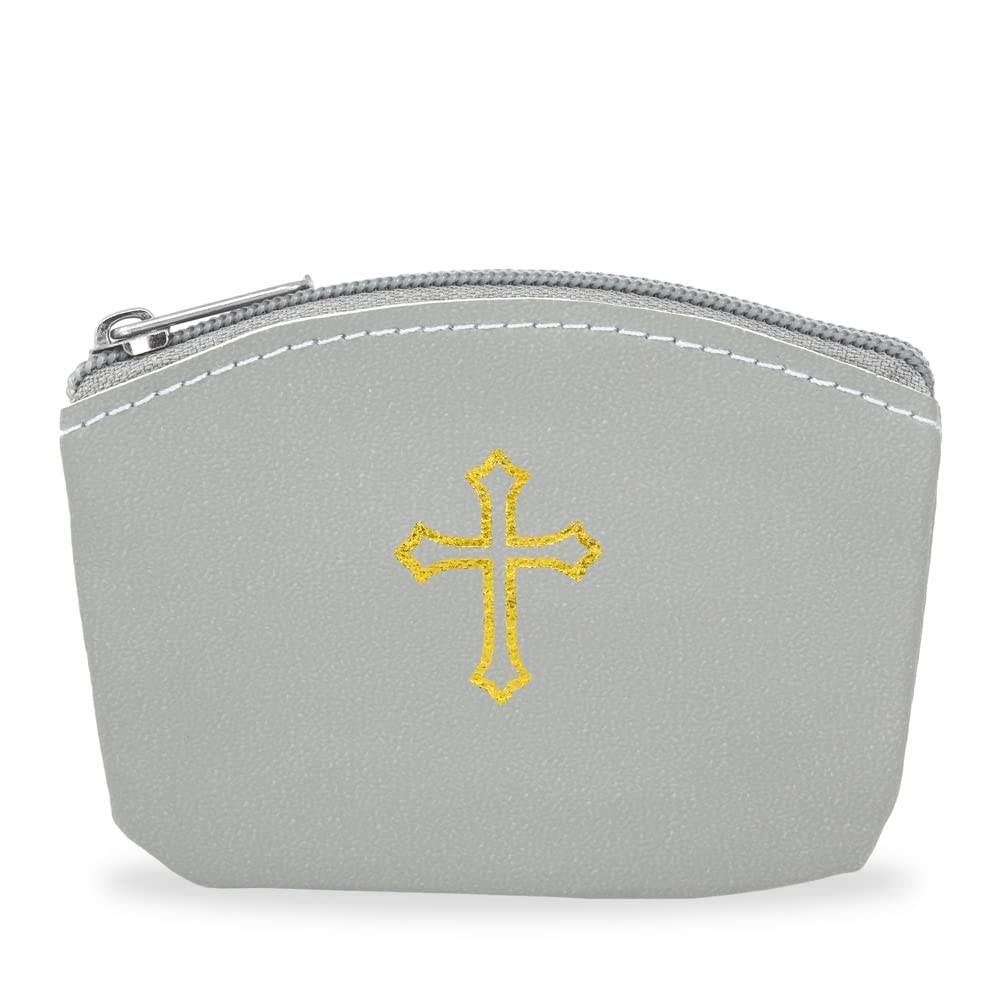 Gray Rosary Case with Zipper and Gold Cross Imprint for Men and Women