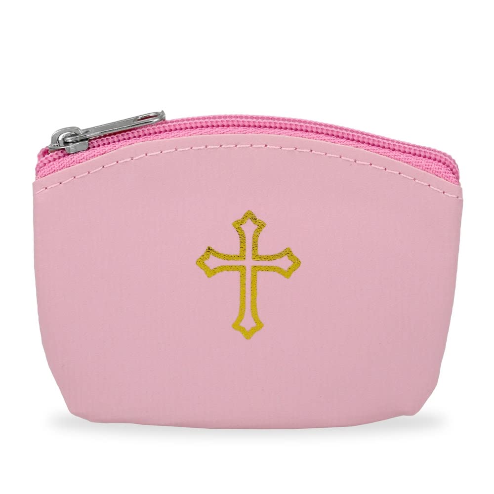 Red Rosary Pouch with Zipper and Gold Cross Imprint