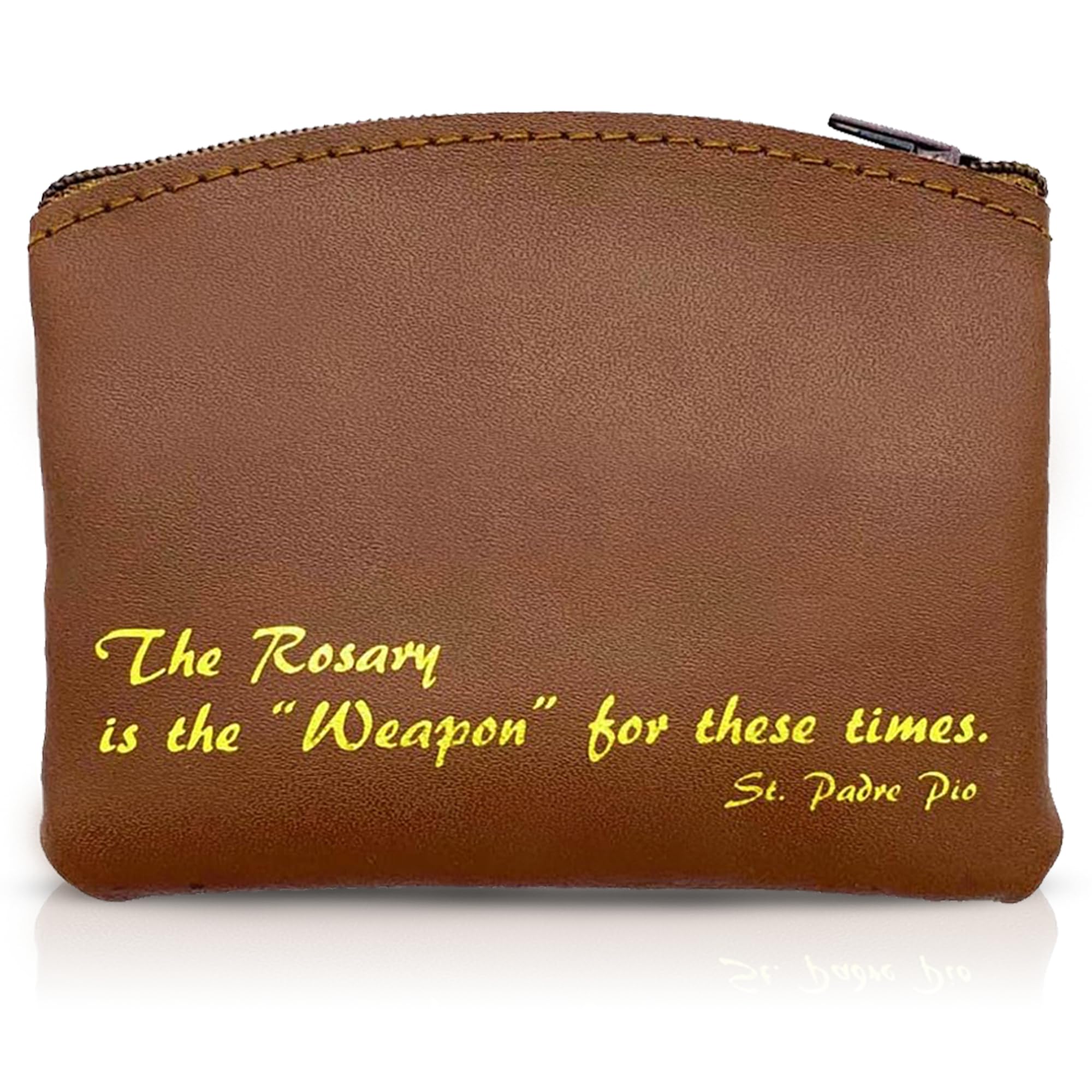 Brown Rosary Pouch with Zipper and Gold Cross Imprint