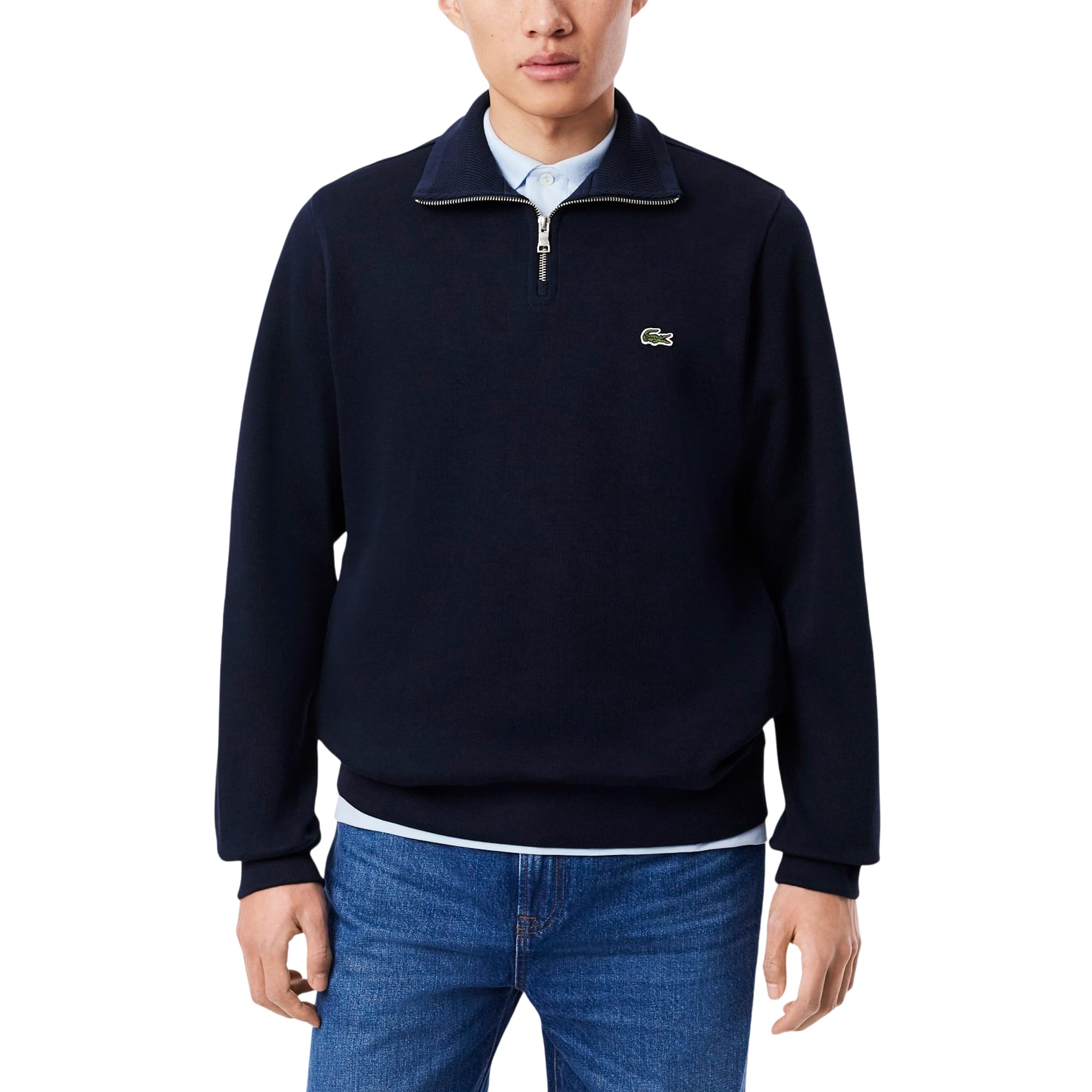 Lacoste mens Long Sleeve Quarter Zip Cotton Sweatshirt, Navy Blue, Medium US