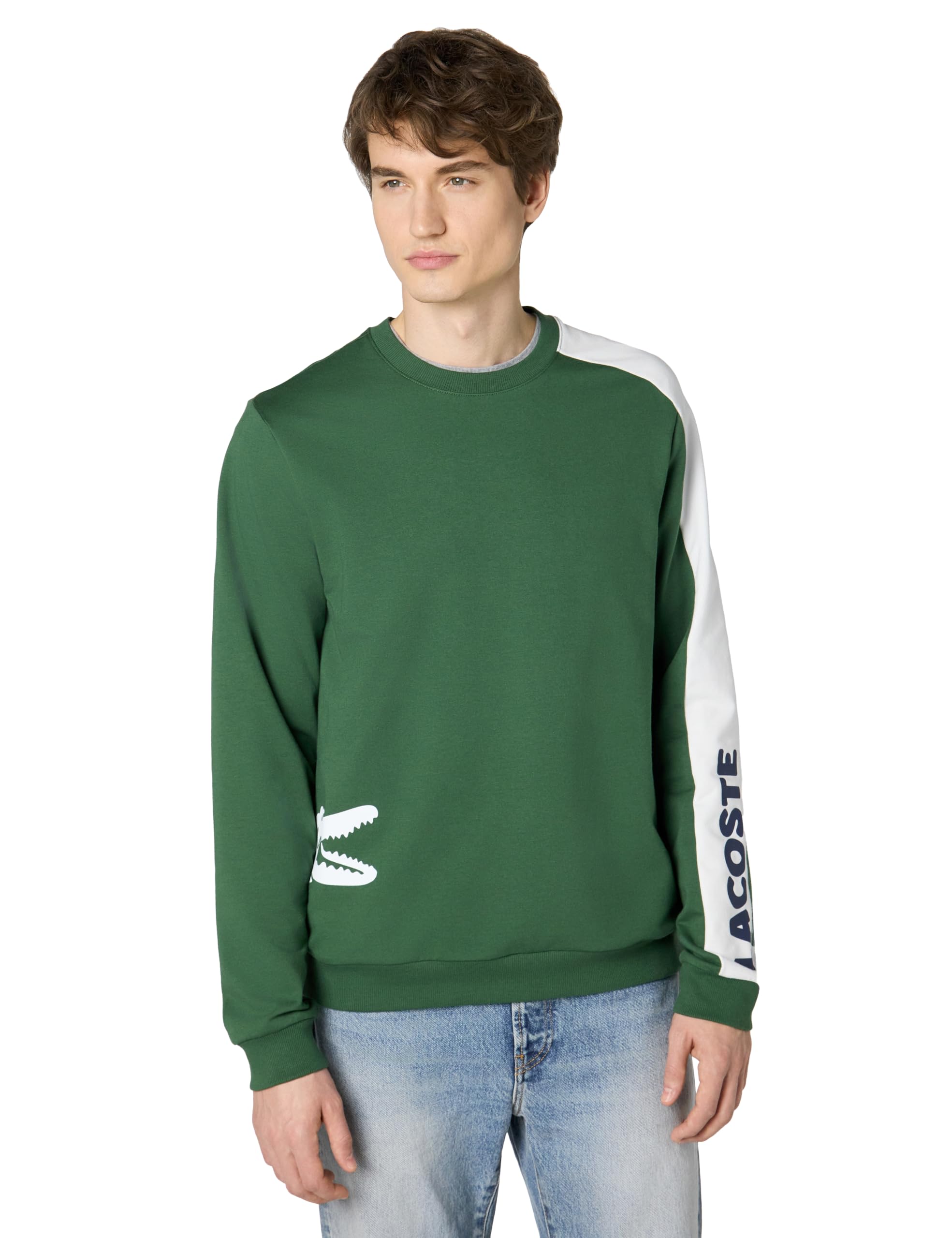 Lacoste mens Long Sleeve Quarter Zip Cotton Sweatshirt, Black, Large US