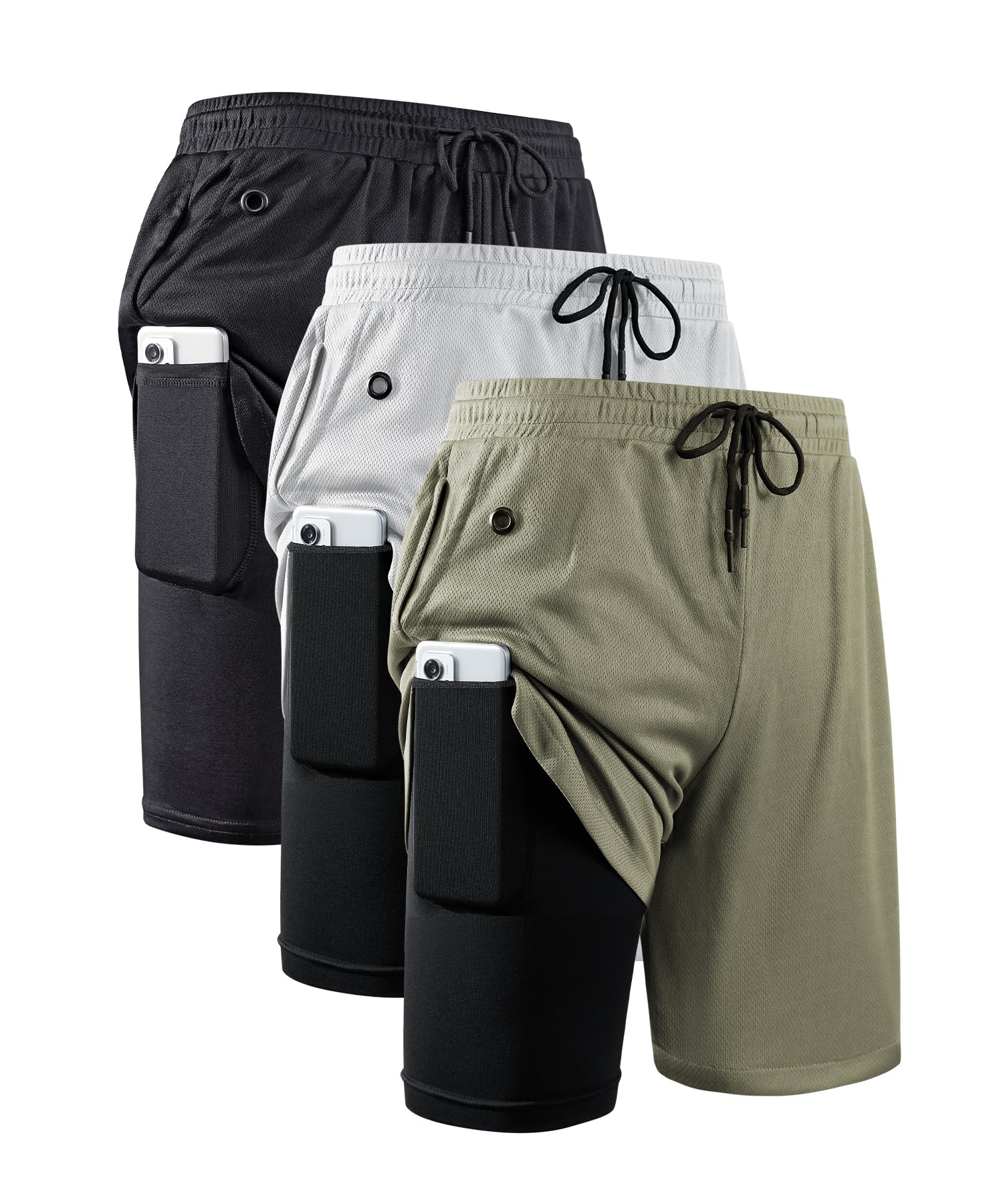 5 Pack: Men's Dry-Fit Sweat Resistant Active Athletic Performance Shorts