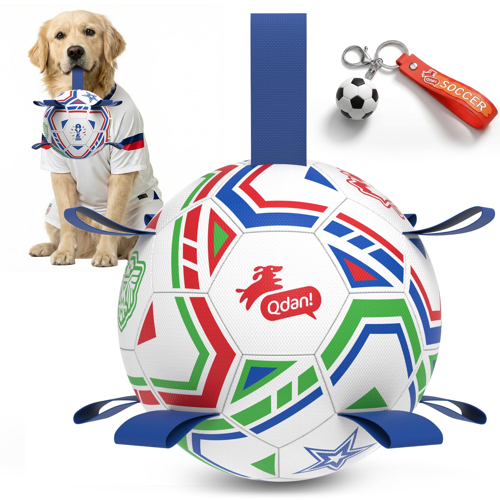 Jolly Pets Tug-n-Toss Dog Toy Ball with Handle, 8 Inches/Large, Blue