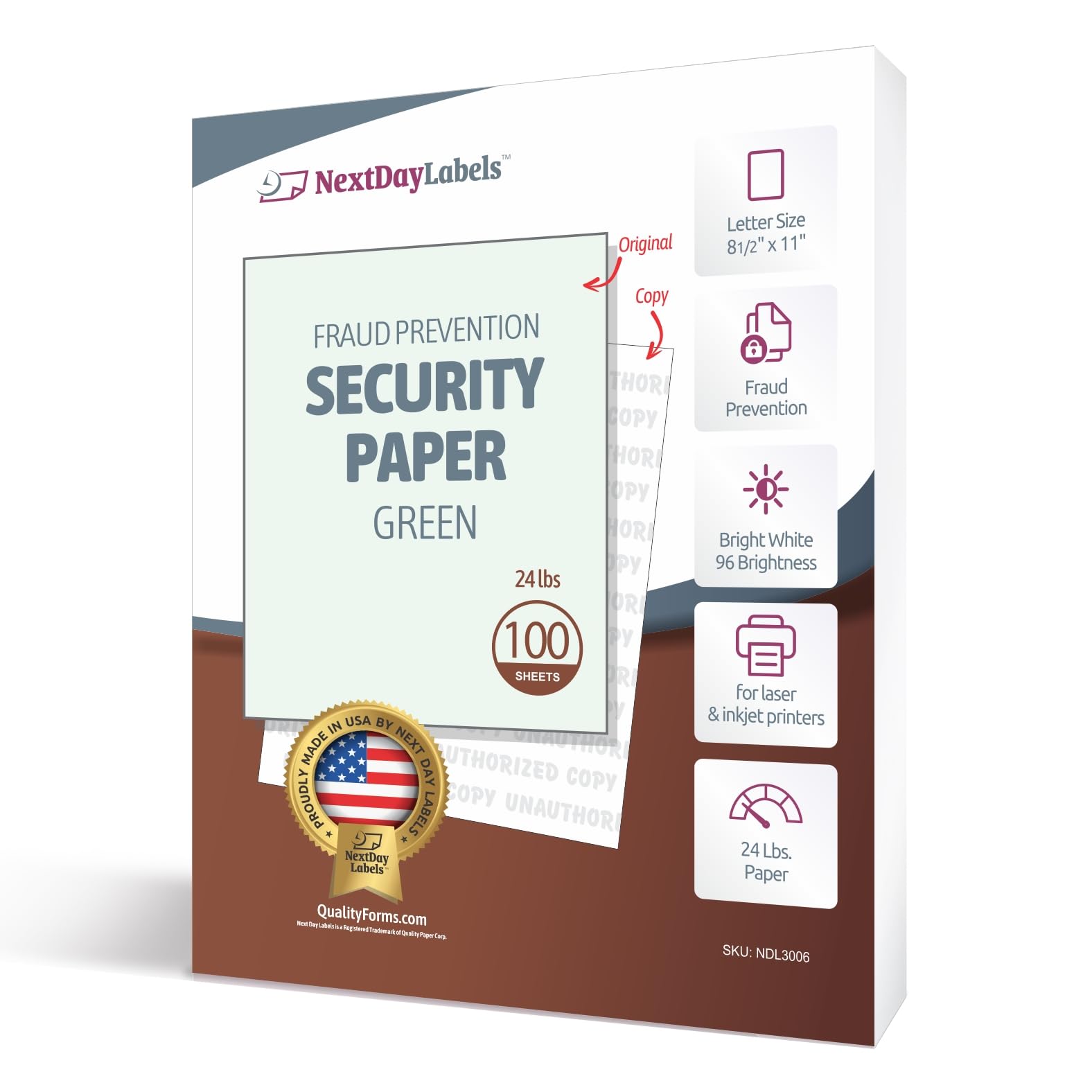 DocuGard Medical Security Papers, 24 lb Bond Weight, 8.5 x 11, Green, 500/Ream
