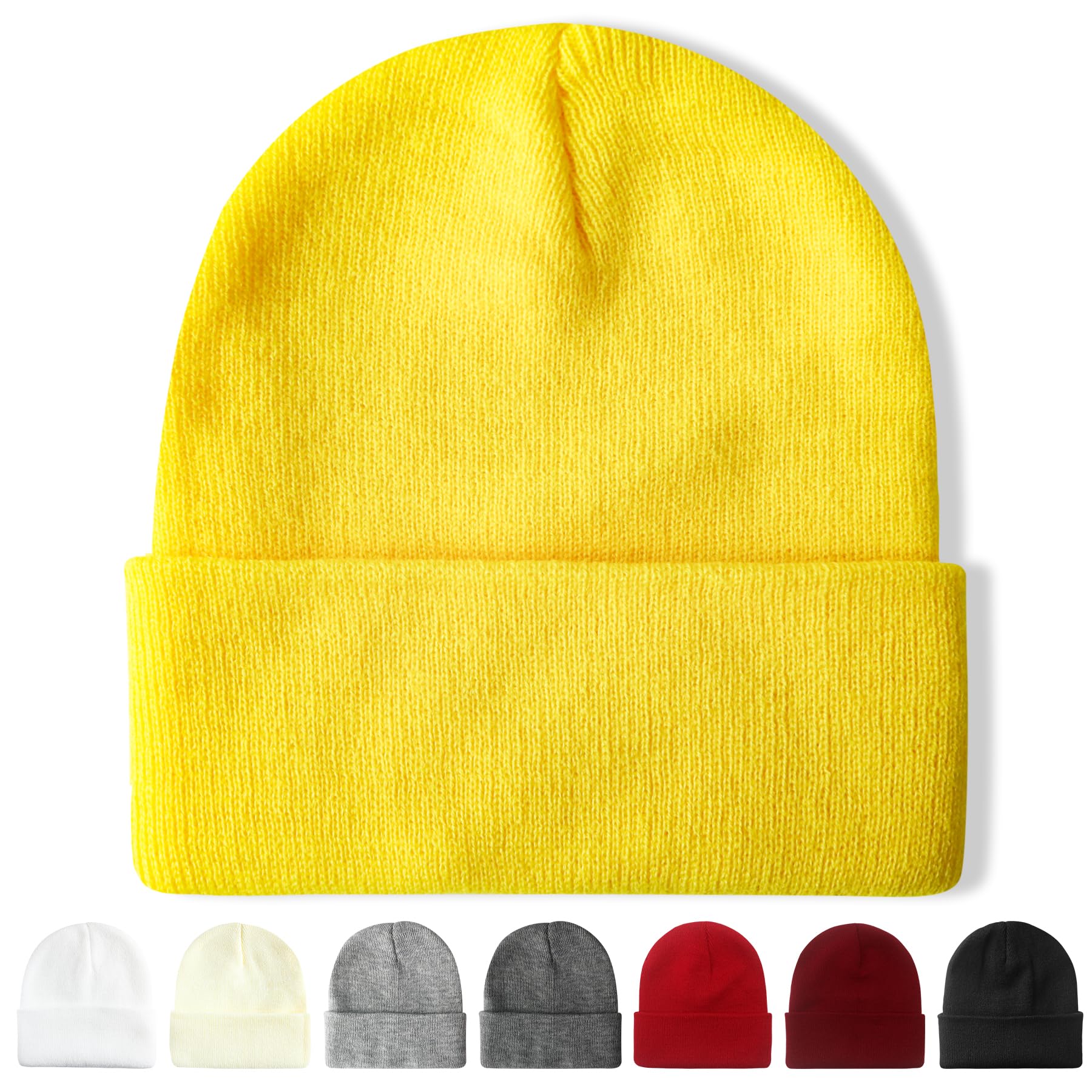 NPQQUAN Unisex Beanie Hats for Men Women Winter Knit Beanies Pure Yellow