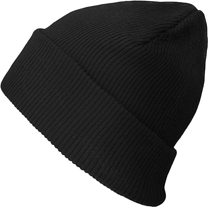 The Hat Depot - 100% Cotton Soft Cuffed Skull Plain Daily Beanie (Black)