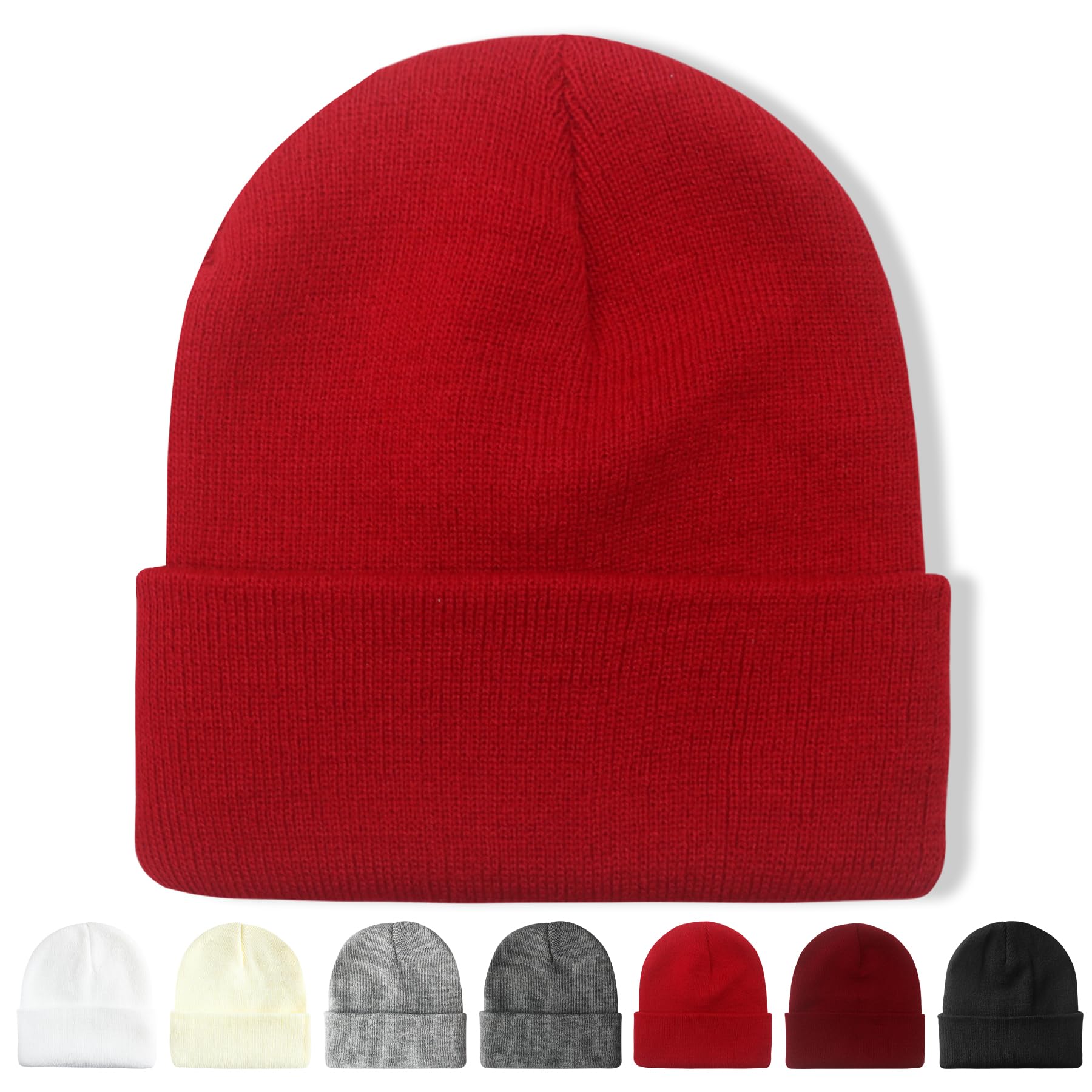 NPQQUAN Unisex Beanie Hats for Men Women Winter Knit Beanies Pure Red