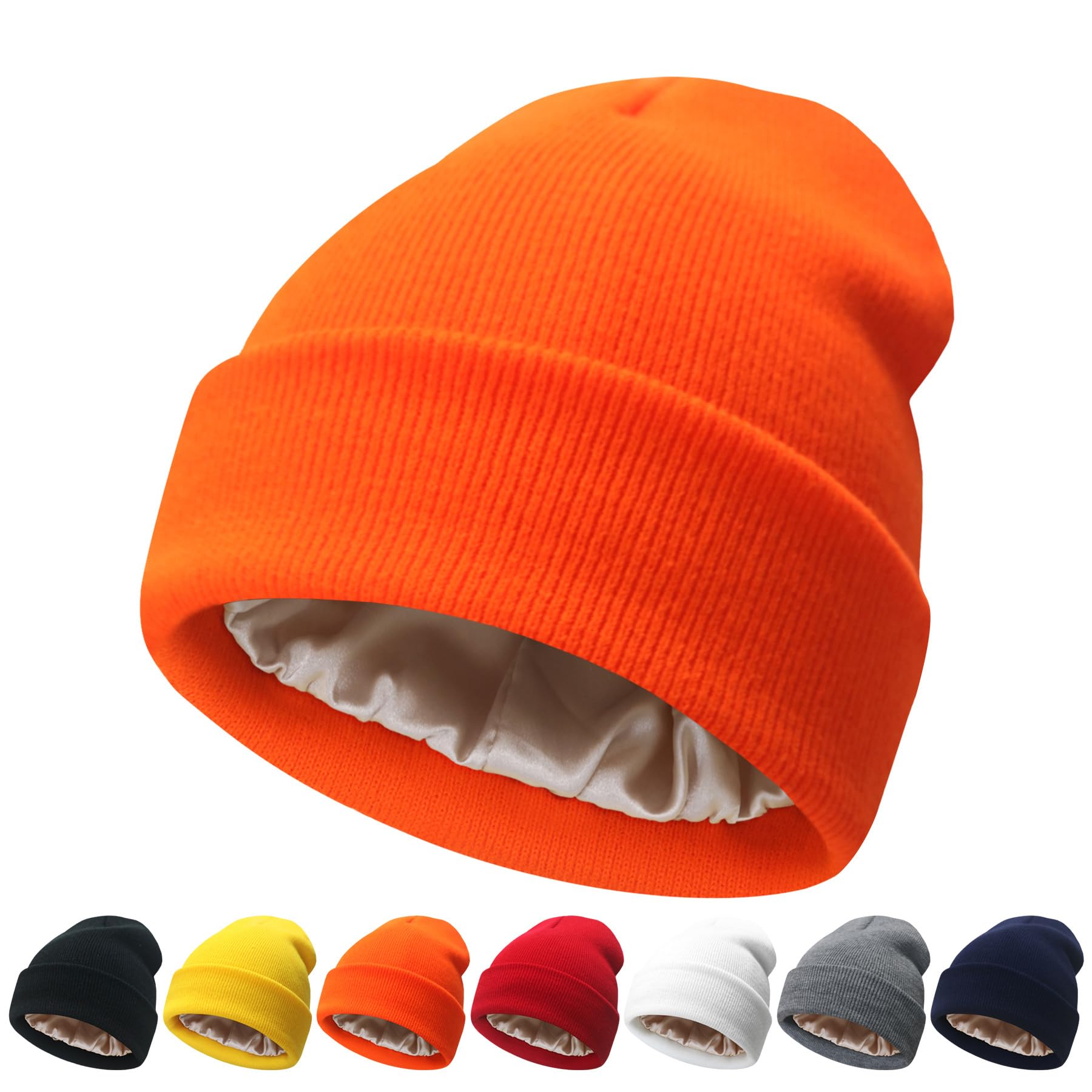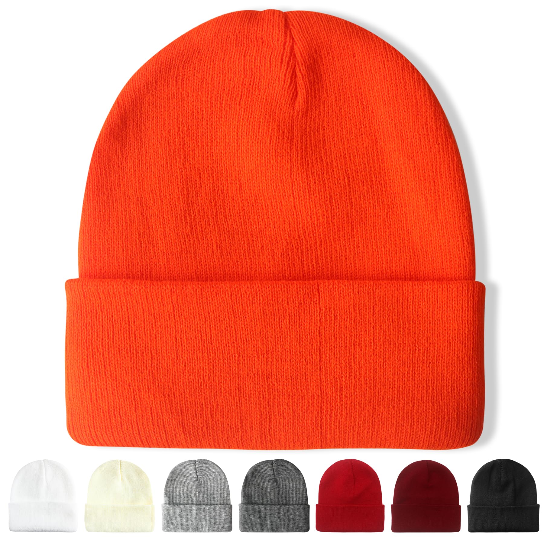 NPQQUAN Unisex Beanie Hats for Men Women Winter Knit Beanies Pure Orange