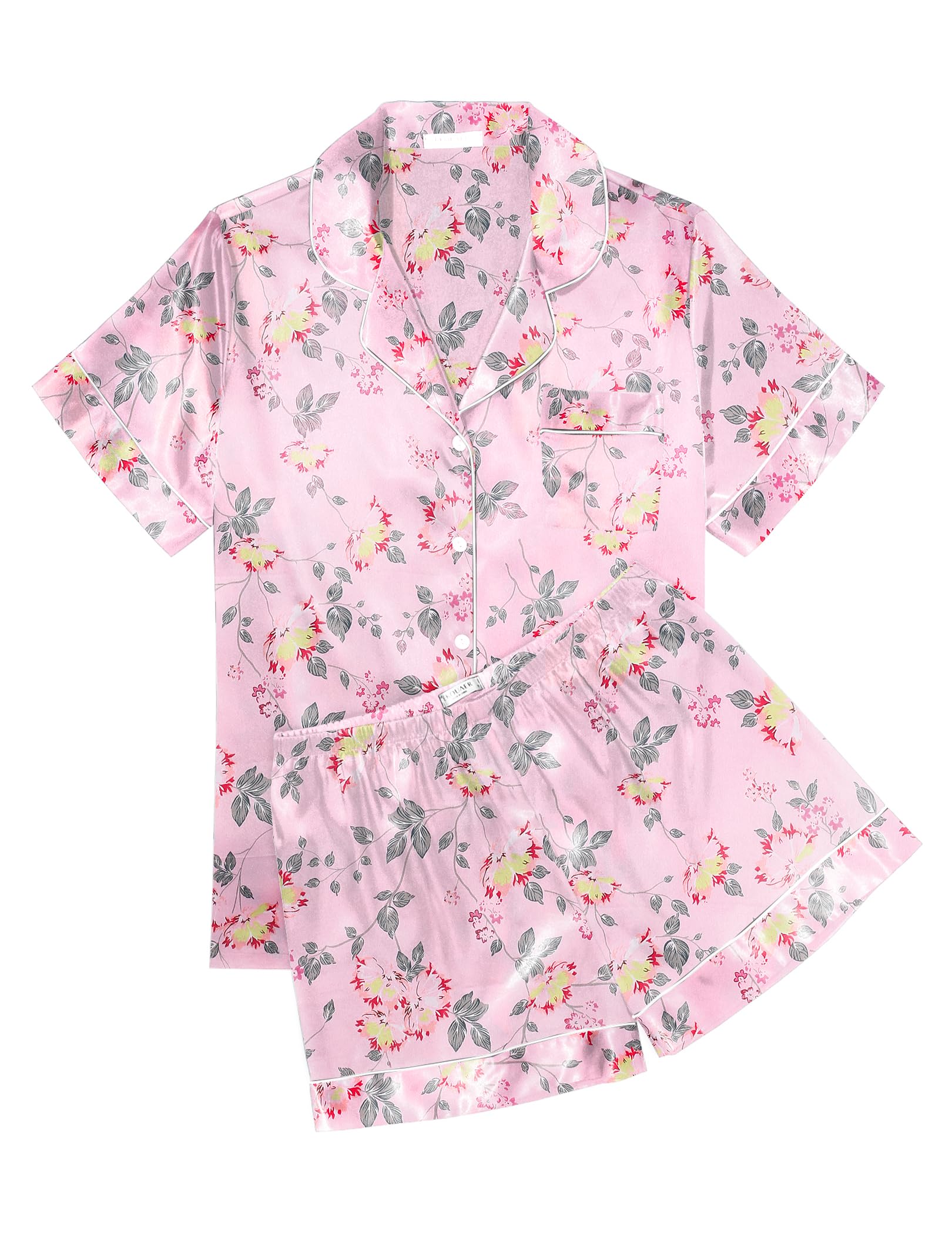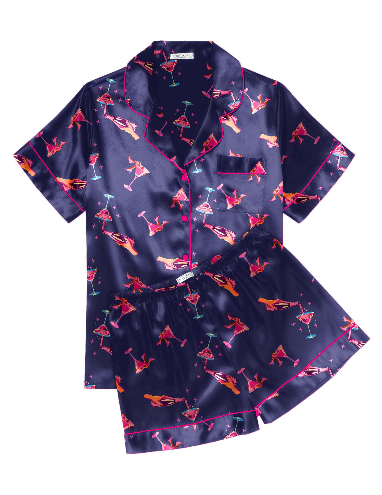 Ekouaer Women Pajama Set Casual Short Set Black Pink Heart Large