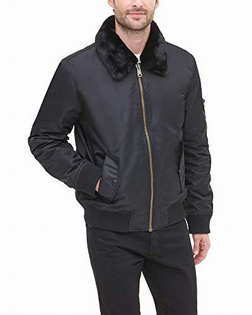 Tommy Hilfiger Men's Mixed-Media Bomber Jacket, Navy, Small
