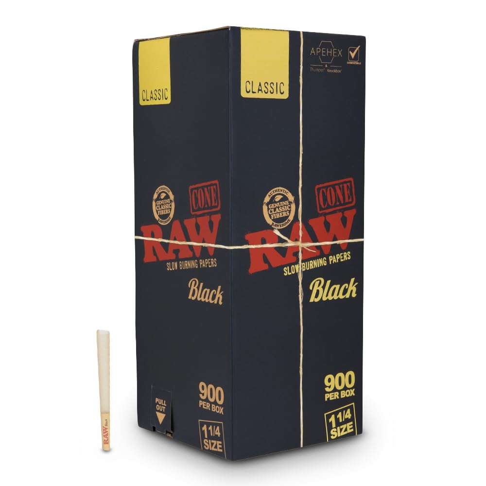 RAW Black 1-1/4 Pre Rolled Cones - 900 Cone Thumper/Bulk