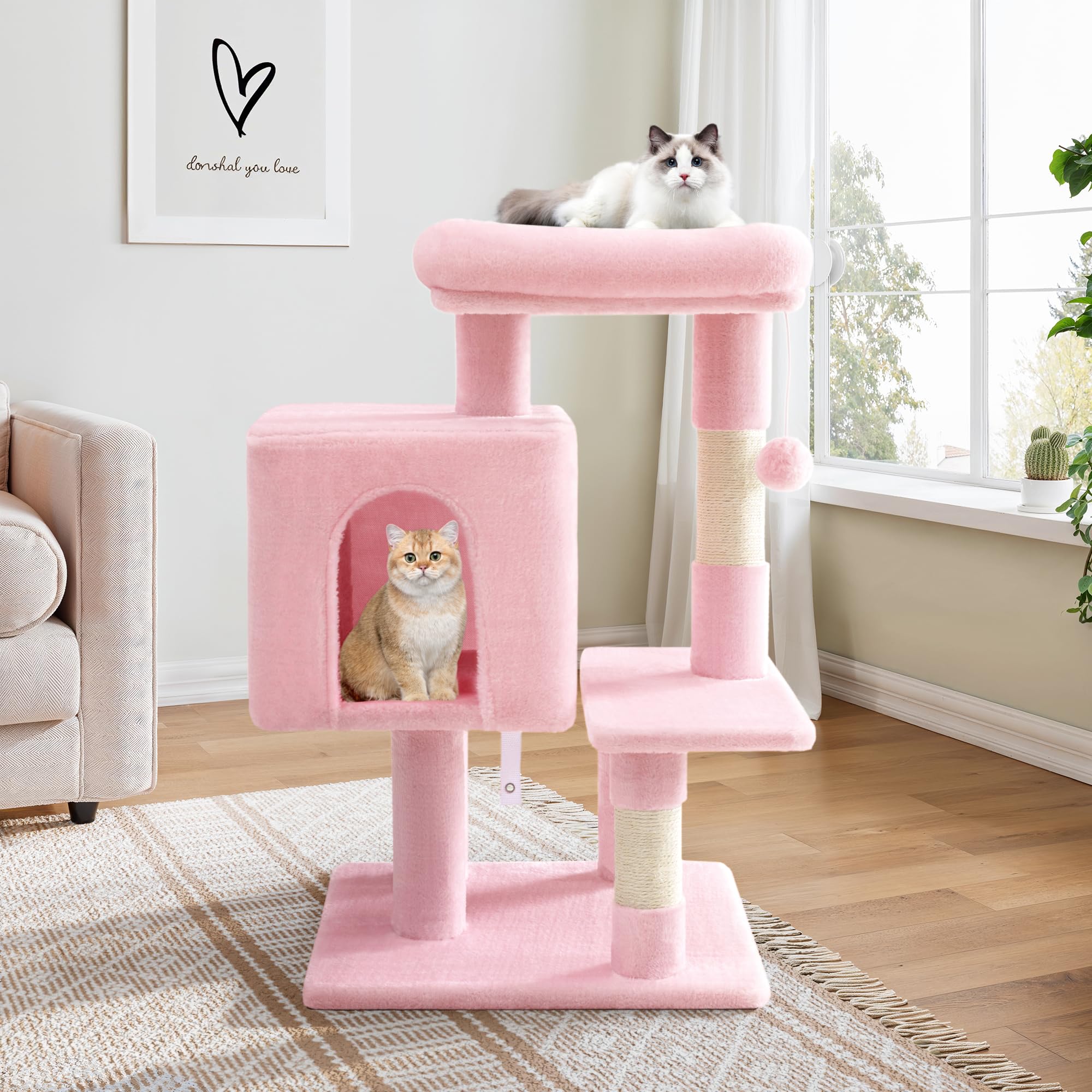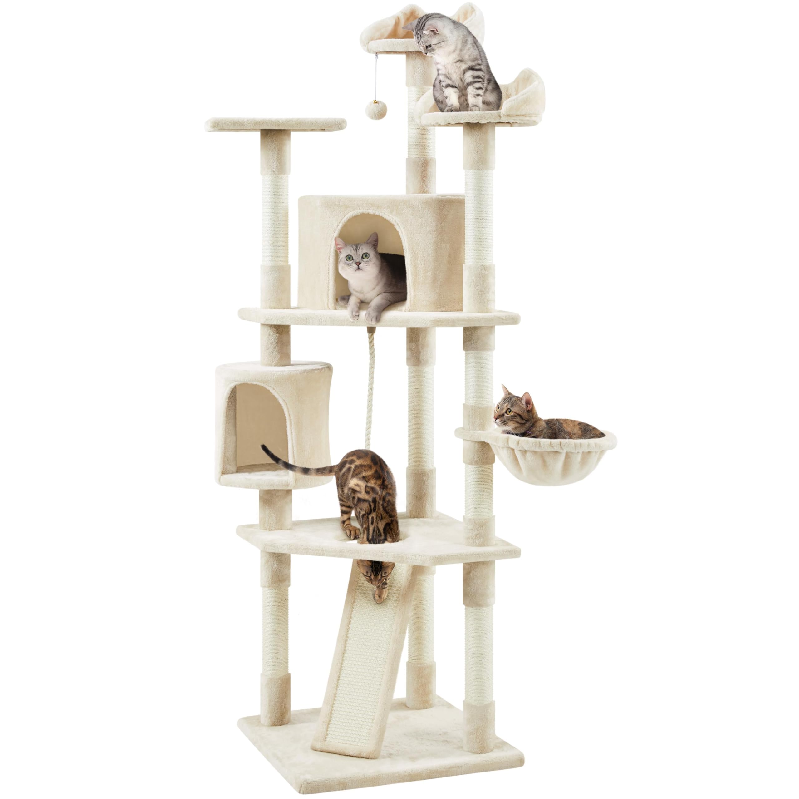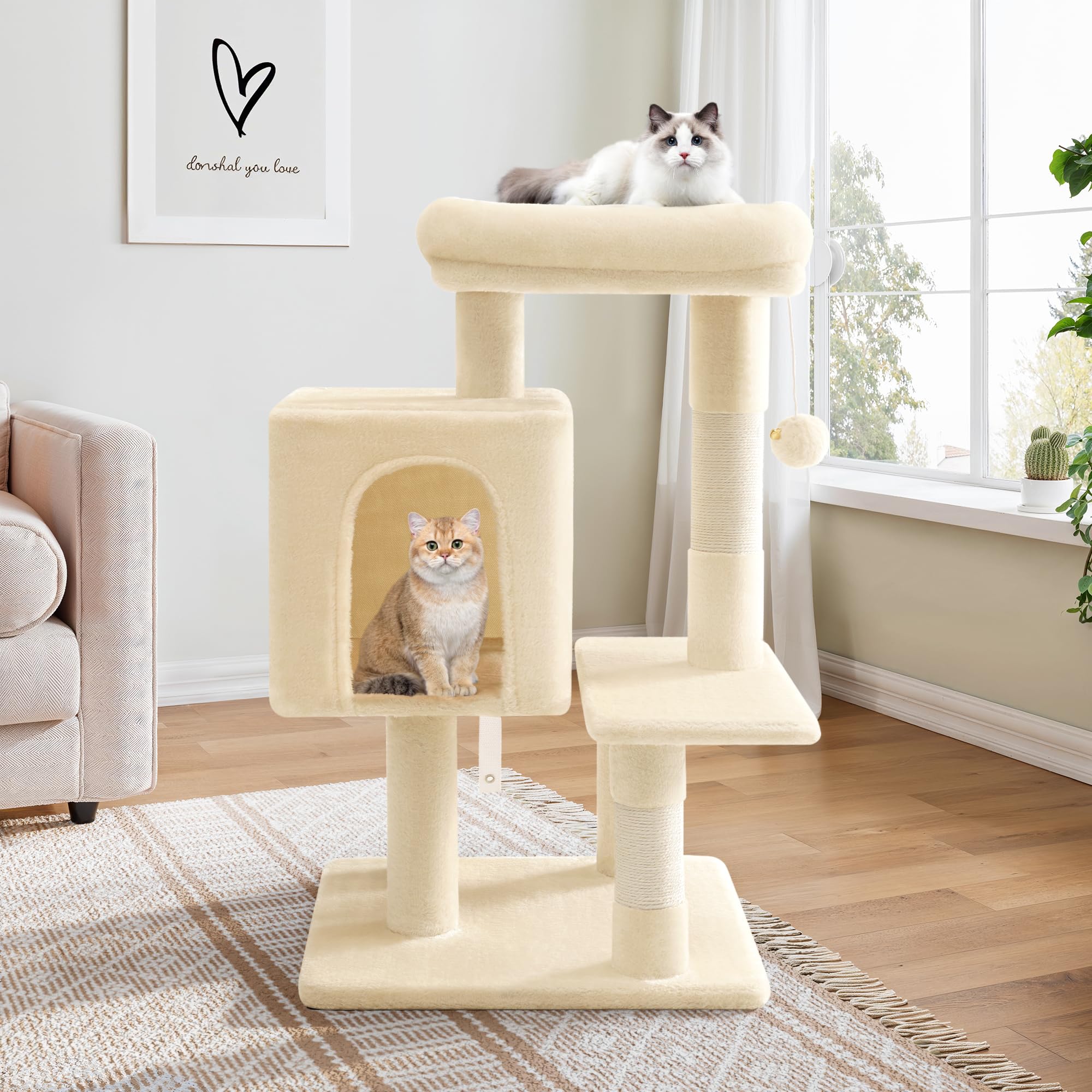 YUNIQUE 39.4'' Cat Tree with Cat Condo and Big Hammock, Beige