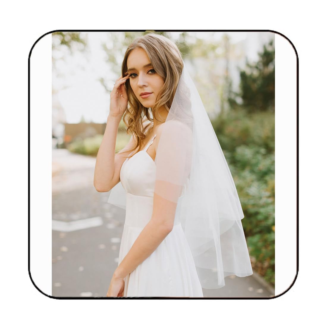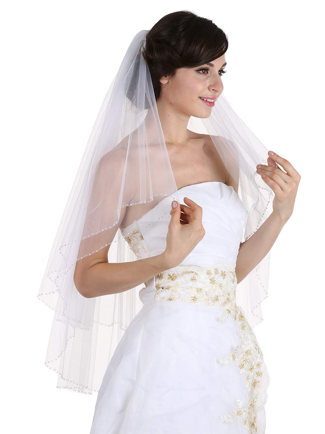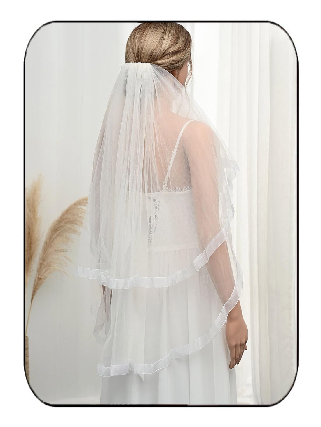 EllieHouse 2 Tier Fingertip Length Wedding Bridal Veil With Comb X30 Ivory