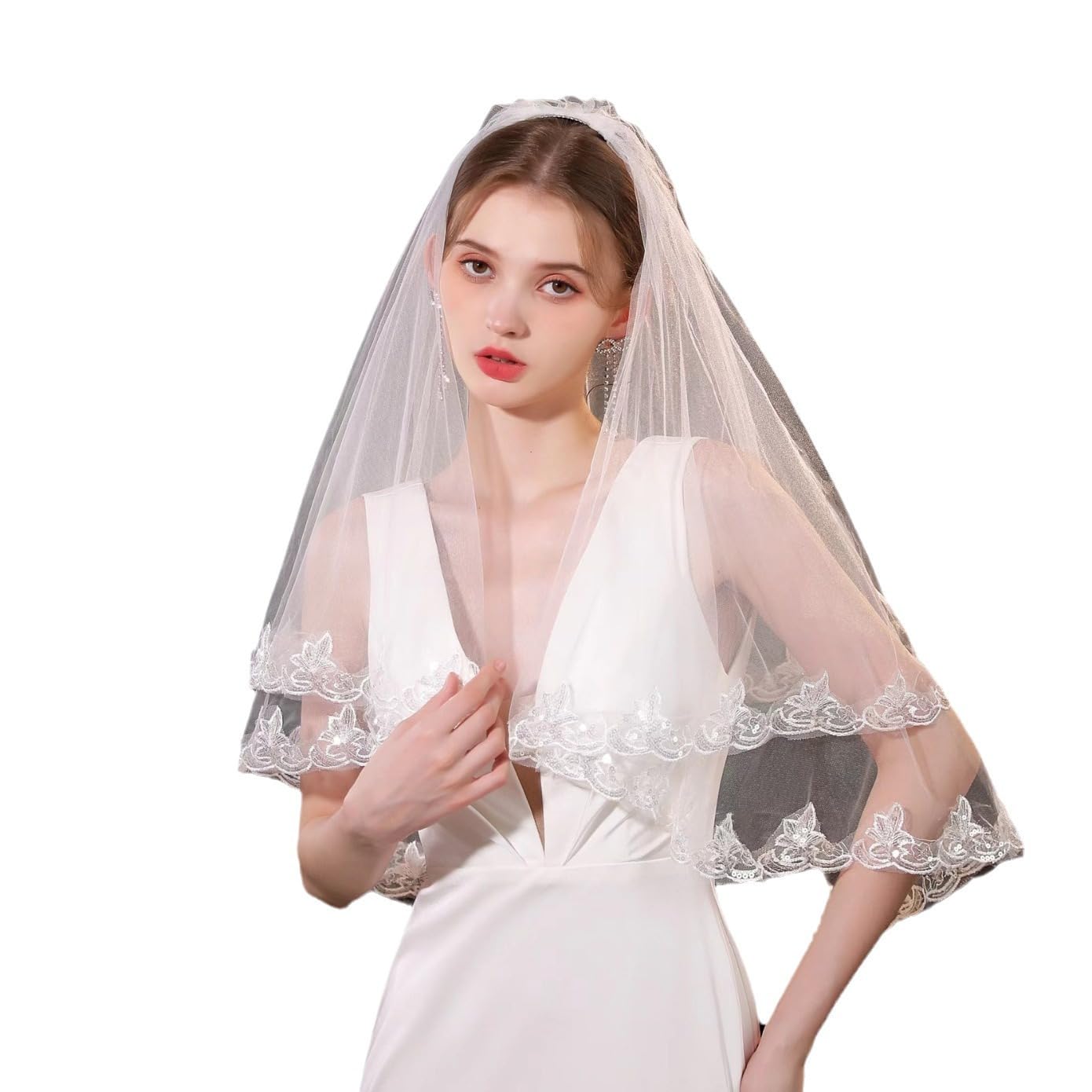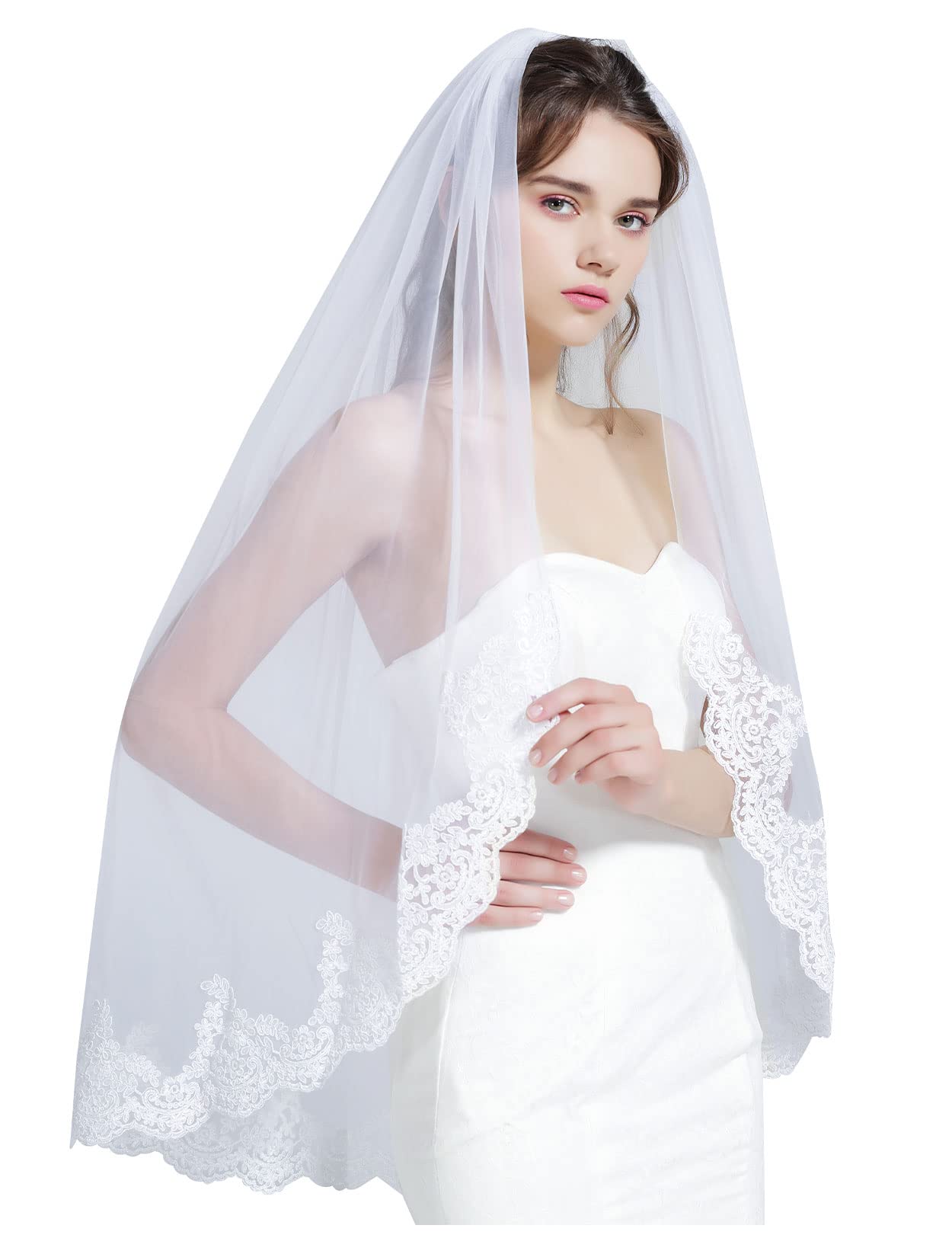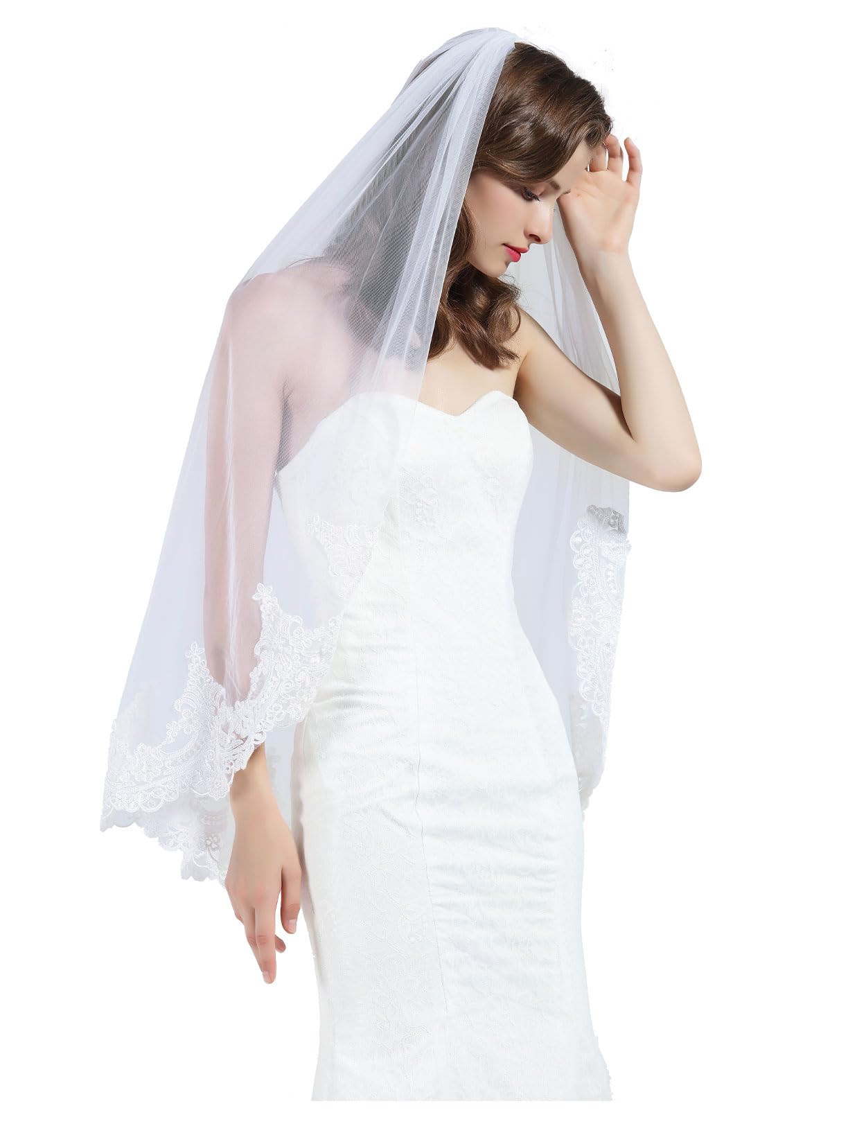 EllieHouse 2 Tier Fingertip Length Wedding Bridal Veil With Comb X30 Ivory