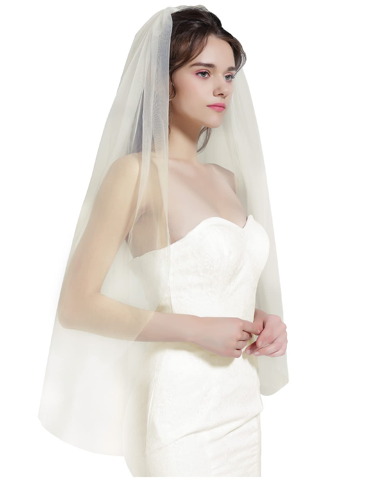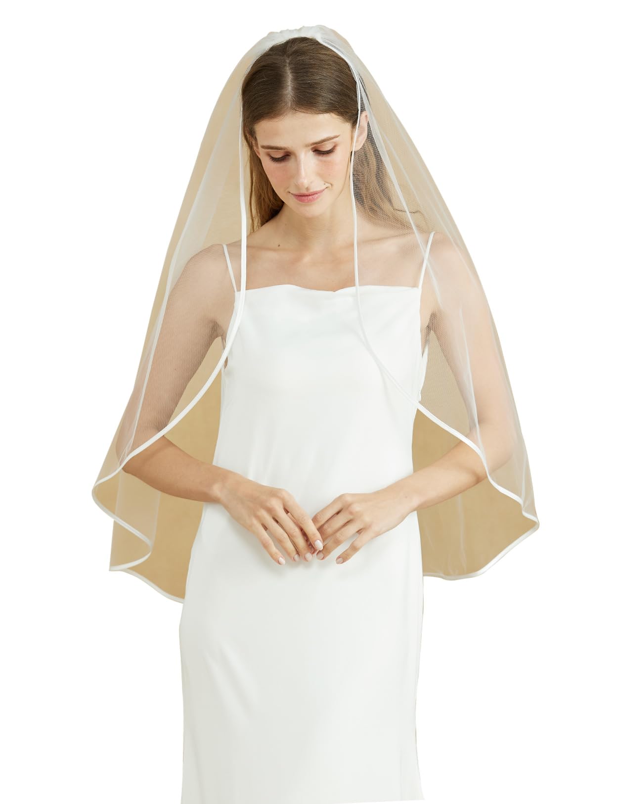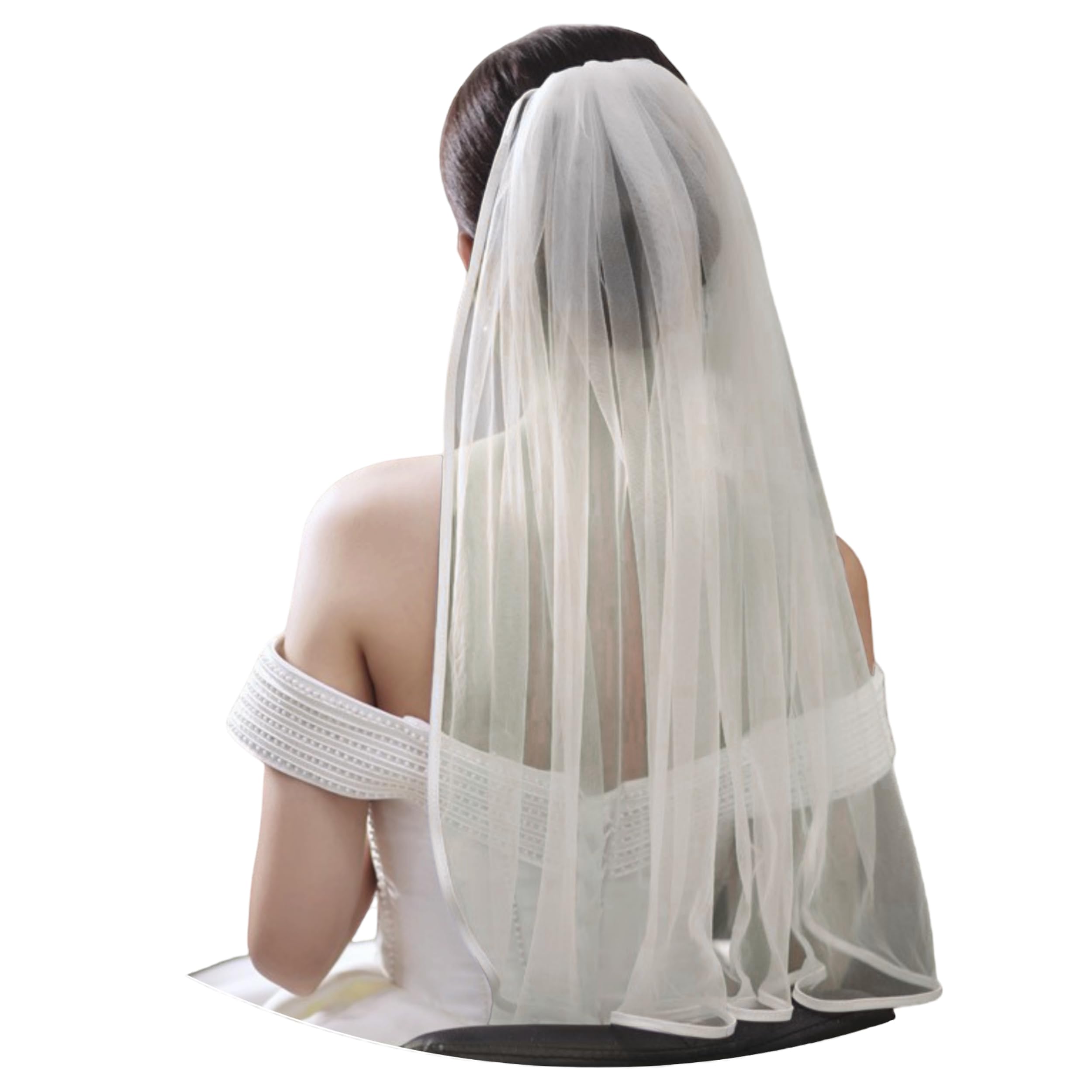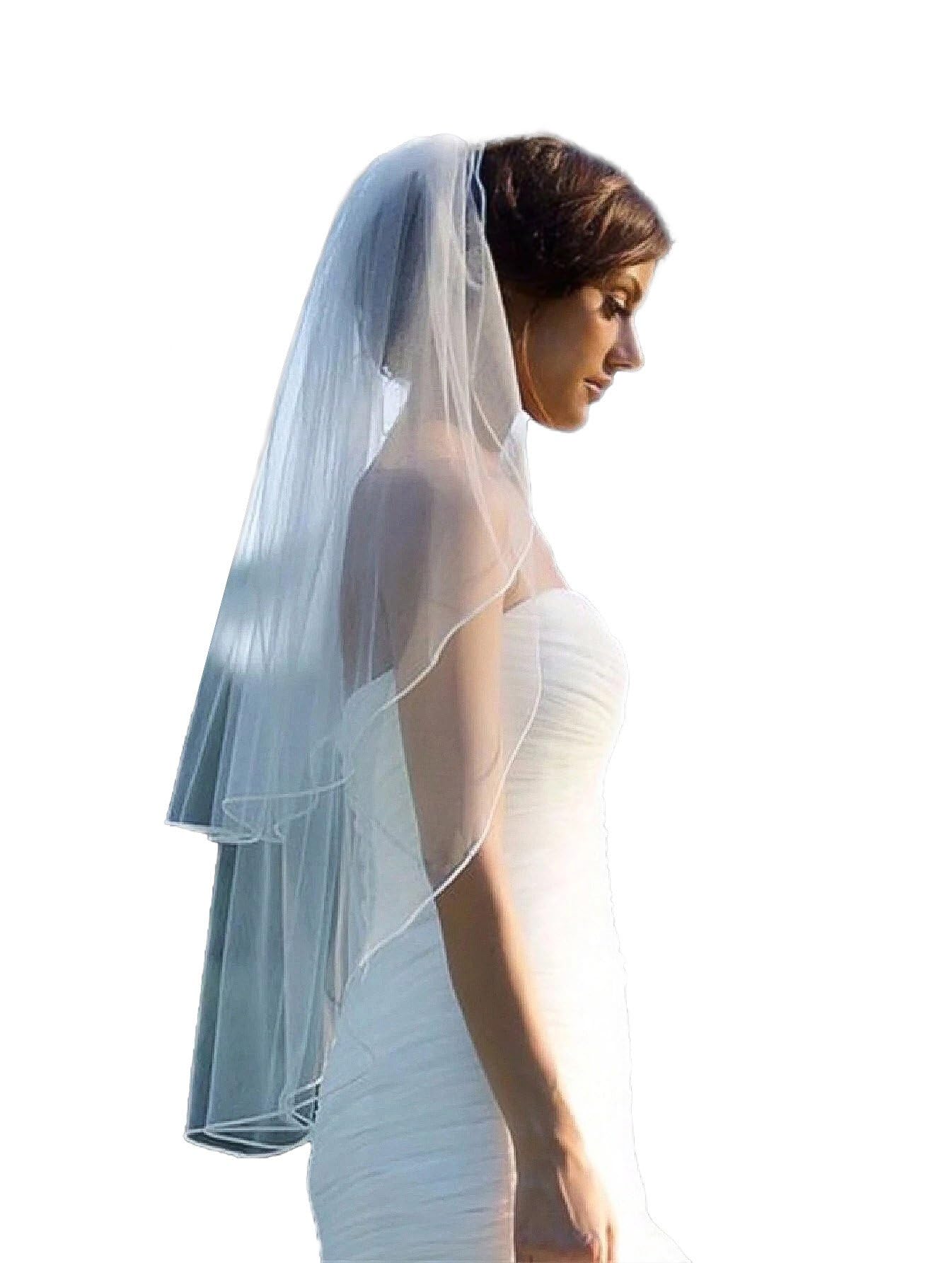 Bridal Veil with Ribbon Edge Trim, 2-Tier Sheer Tulle, (Ivory)