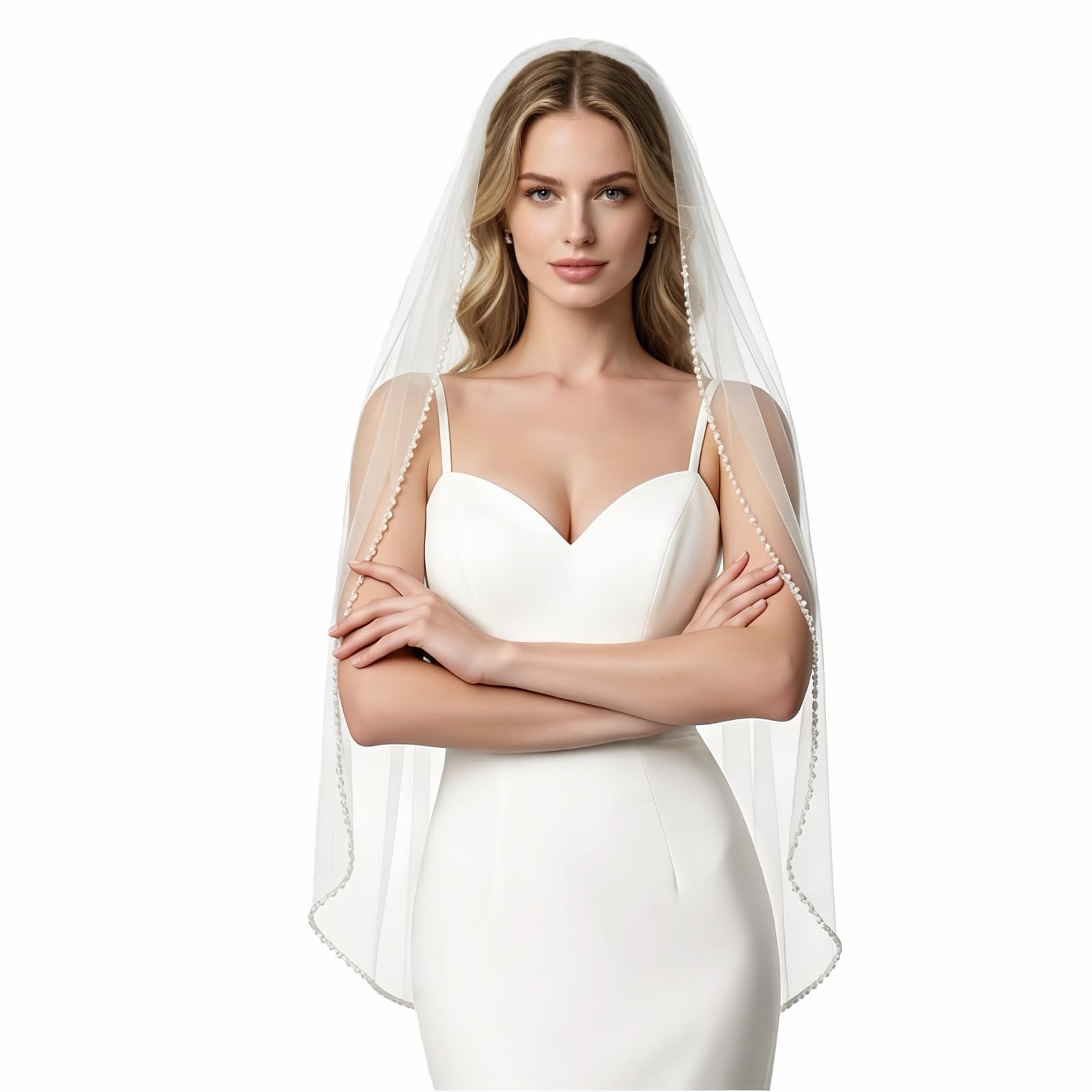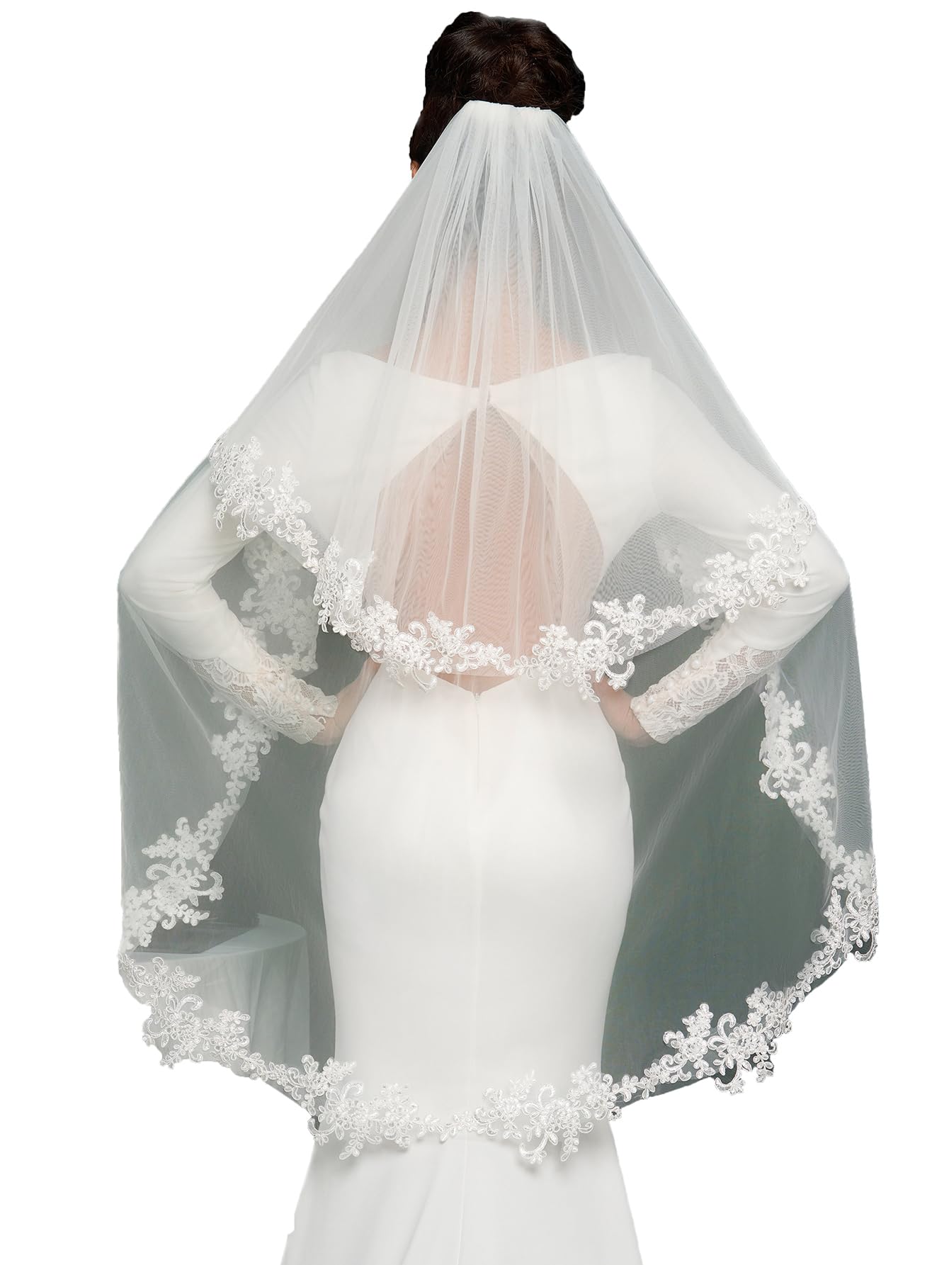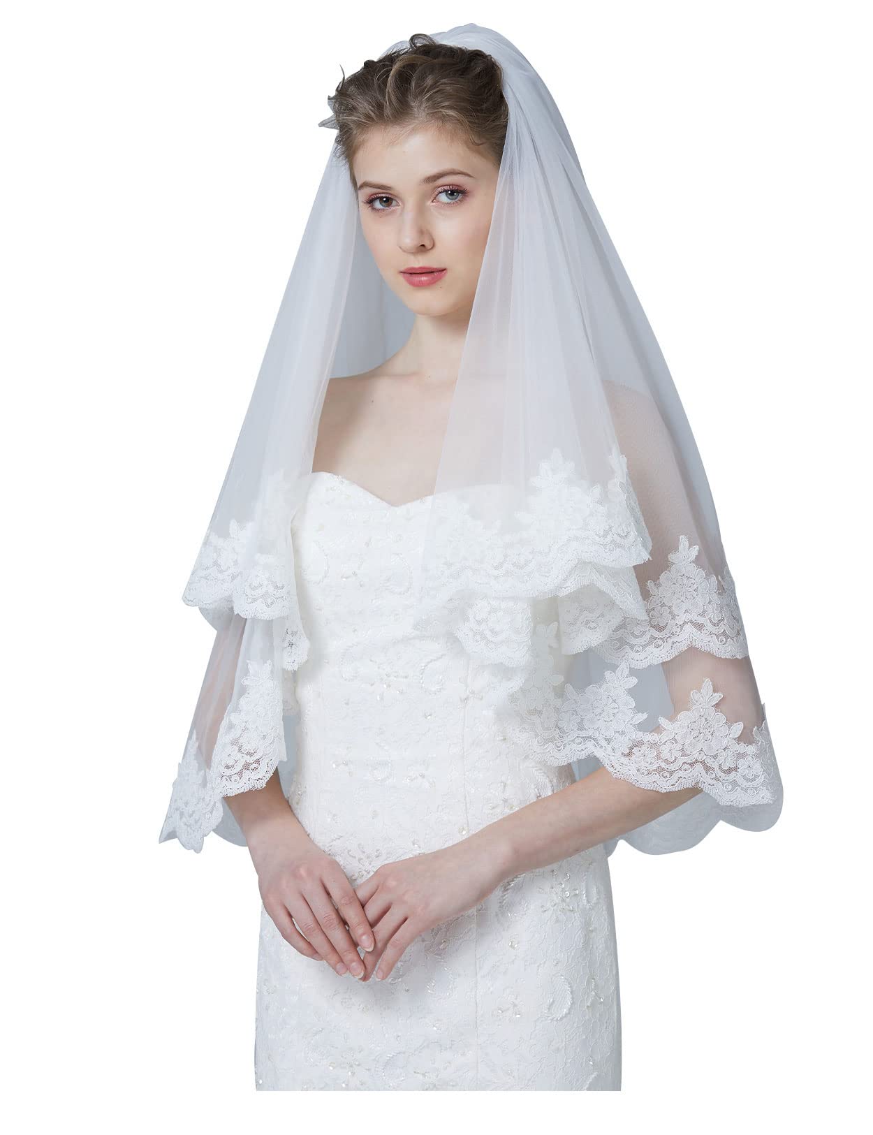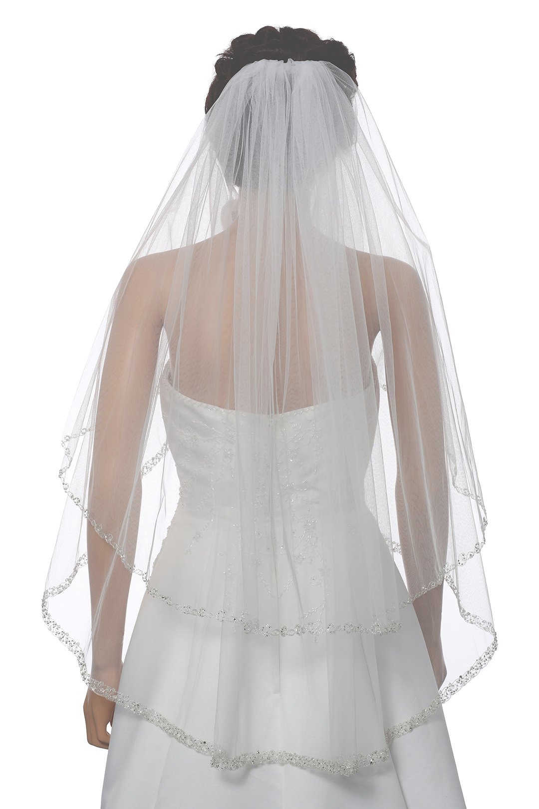 Bridal Veil with Ribbon Edge Trim, 2-Tier Sheer Tulle, (Ivory)
