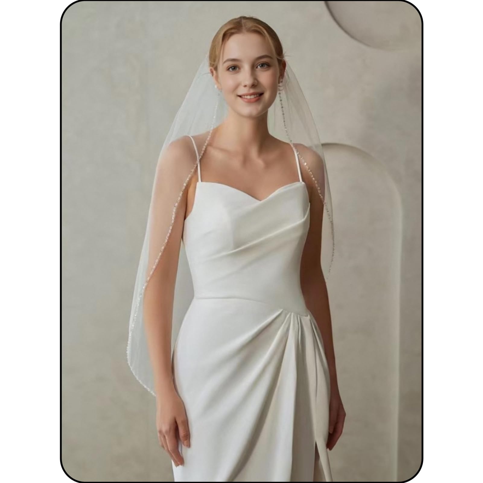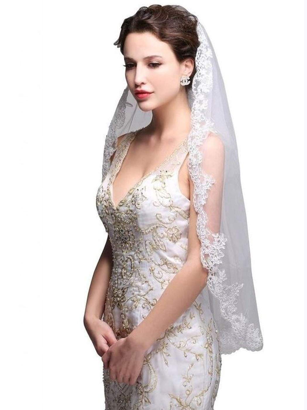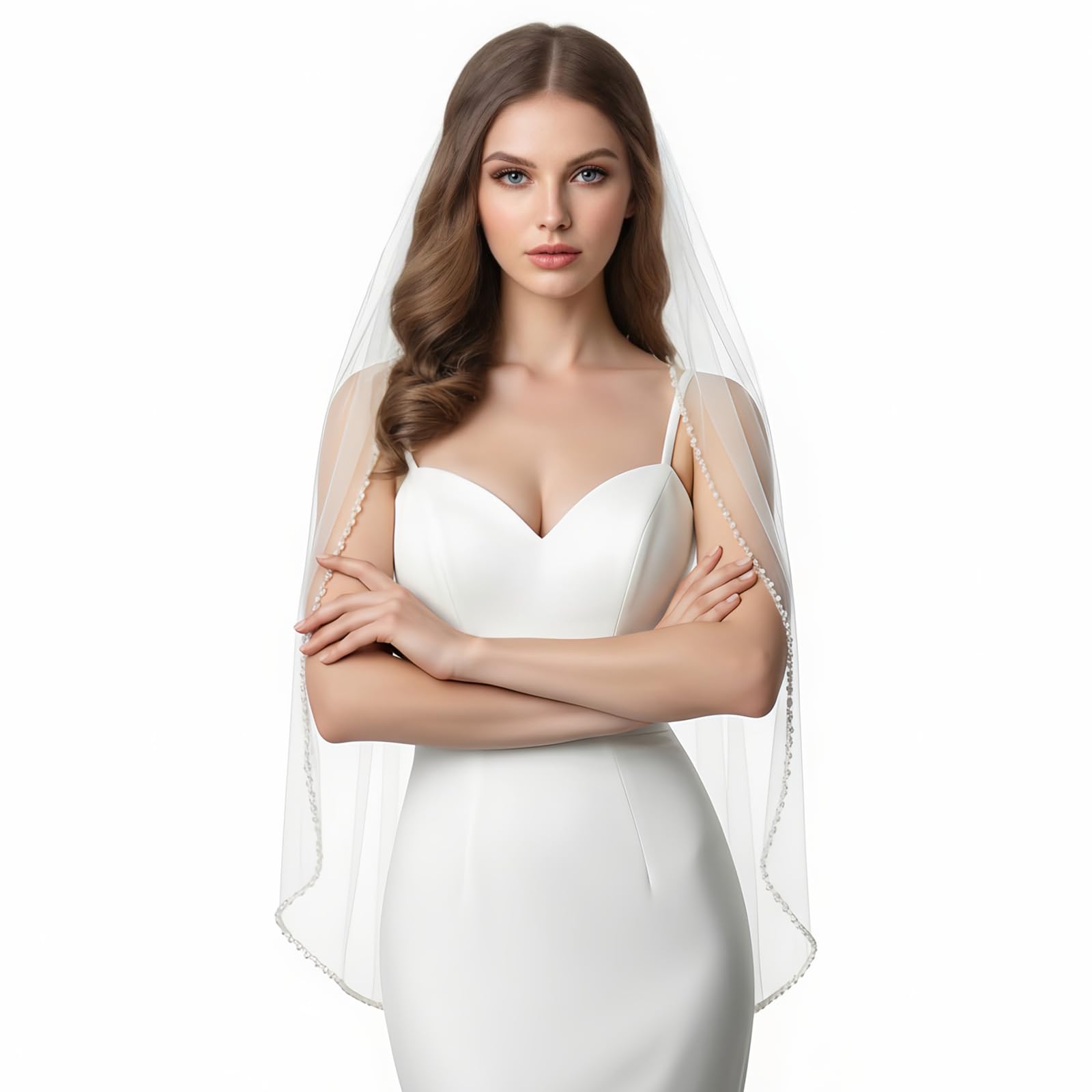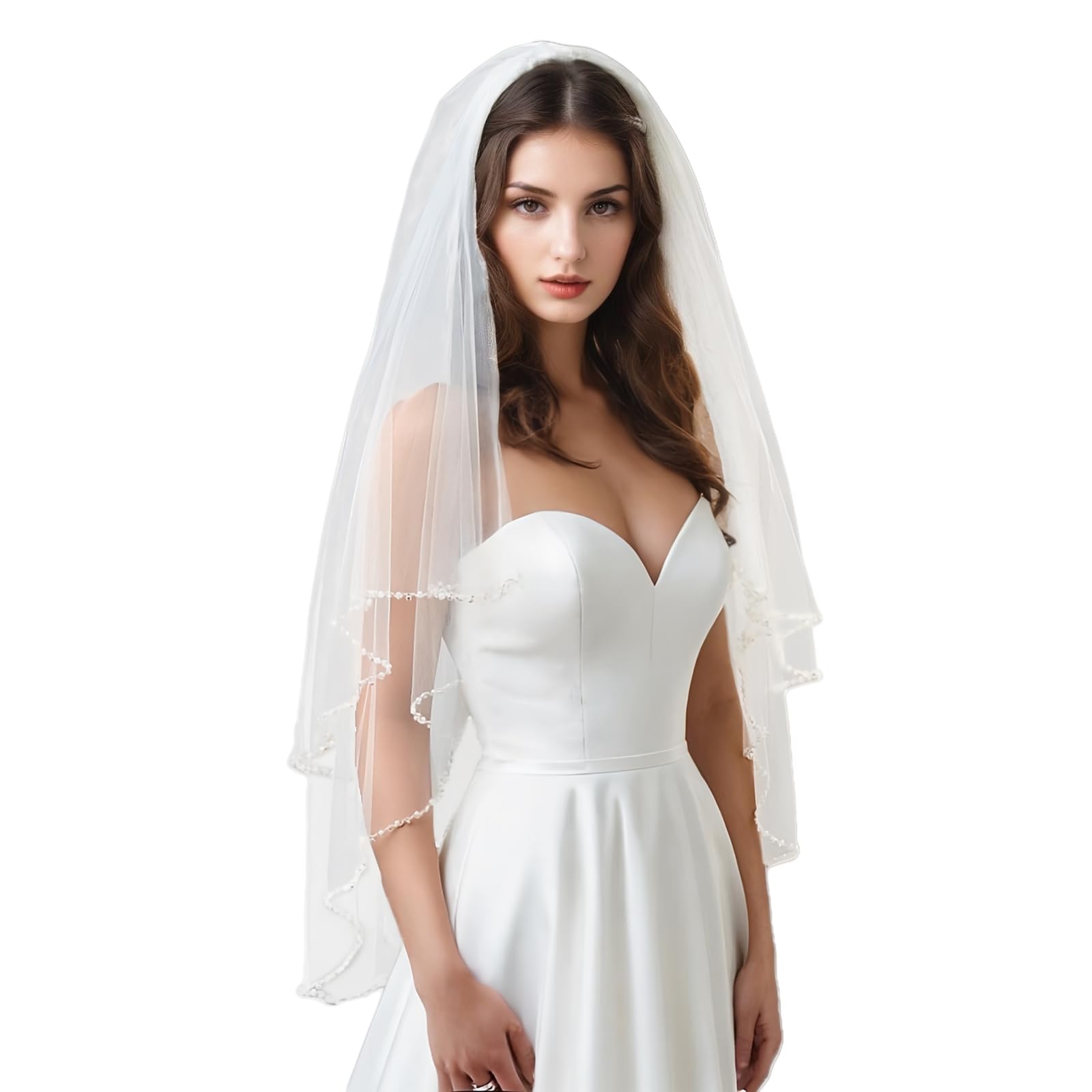 Bridal Veil with Ribbon Edge Trim, 2-Tier Sheer Tulle, (Ivory)