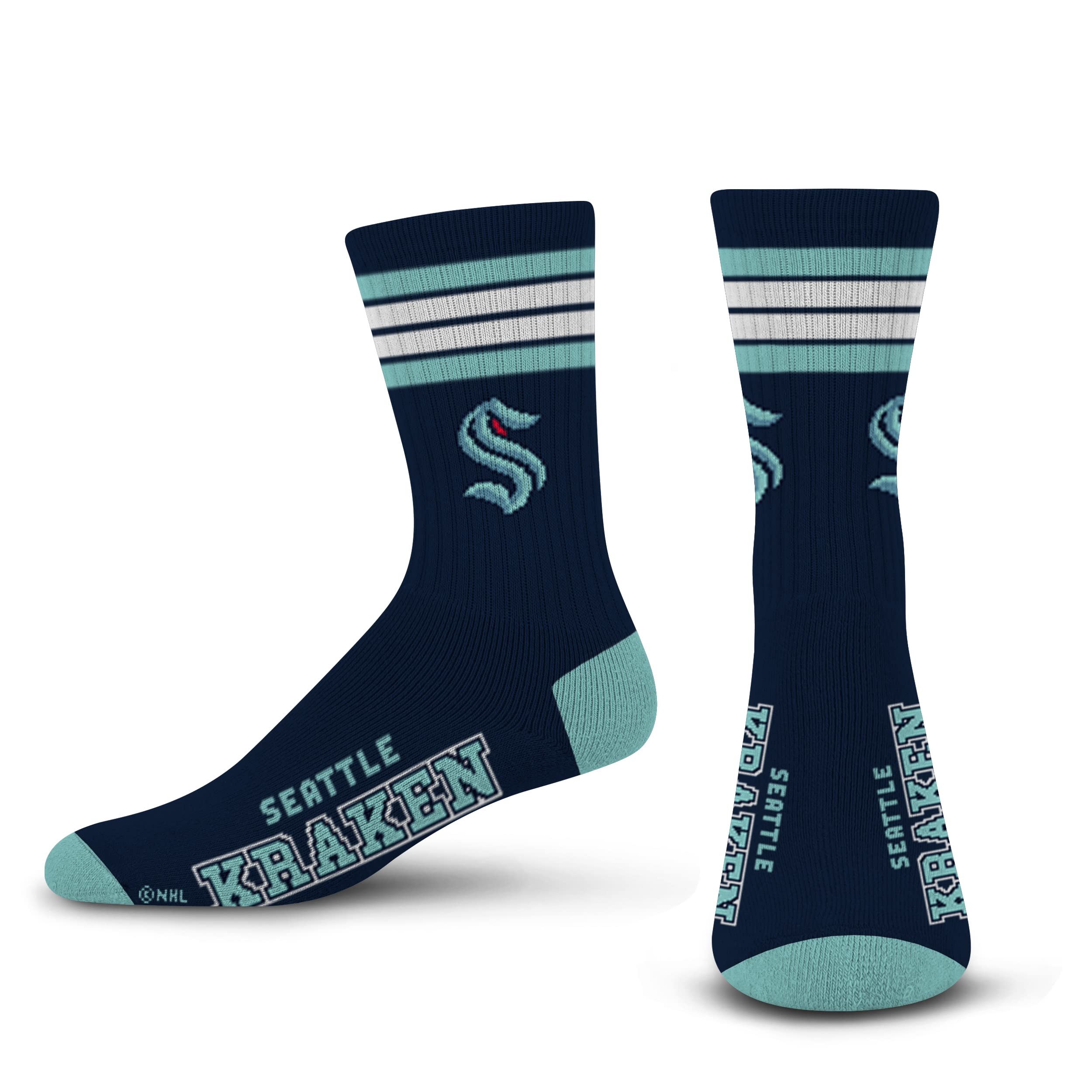 For Bare Feet NHL Seattle Kraken 4 Stripe Deuce Crew Sock Team Color MEDIUM