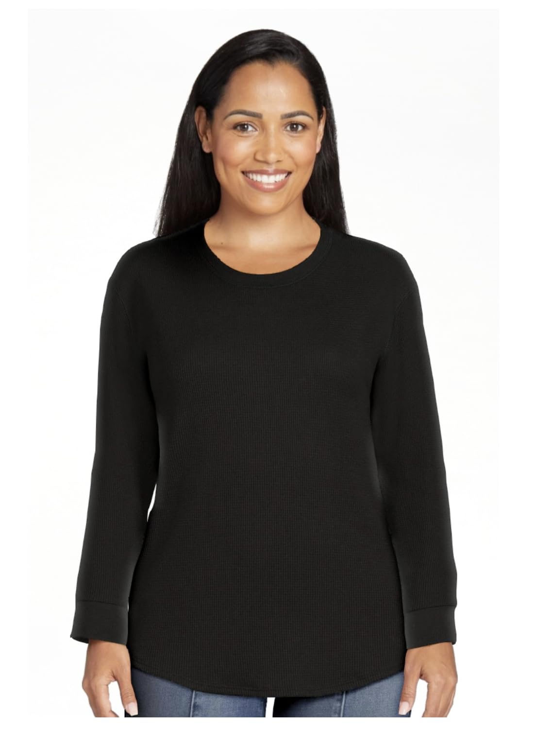 Time and Tru Women's Long Sleeve Thermal Top (Black, Large)
