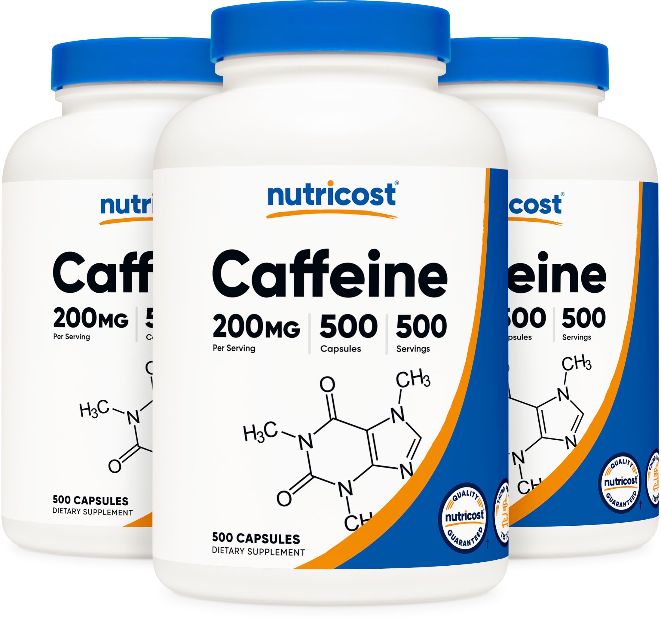 Nutricost Caffeine Pills (3 Bottles) - 200mg Capsules - 500 Count Each