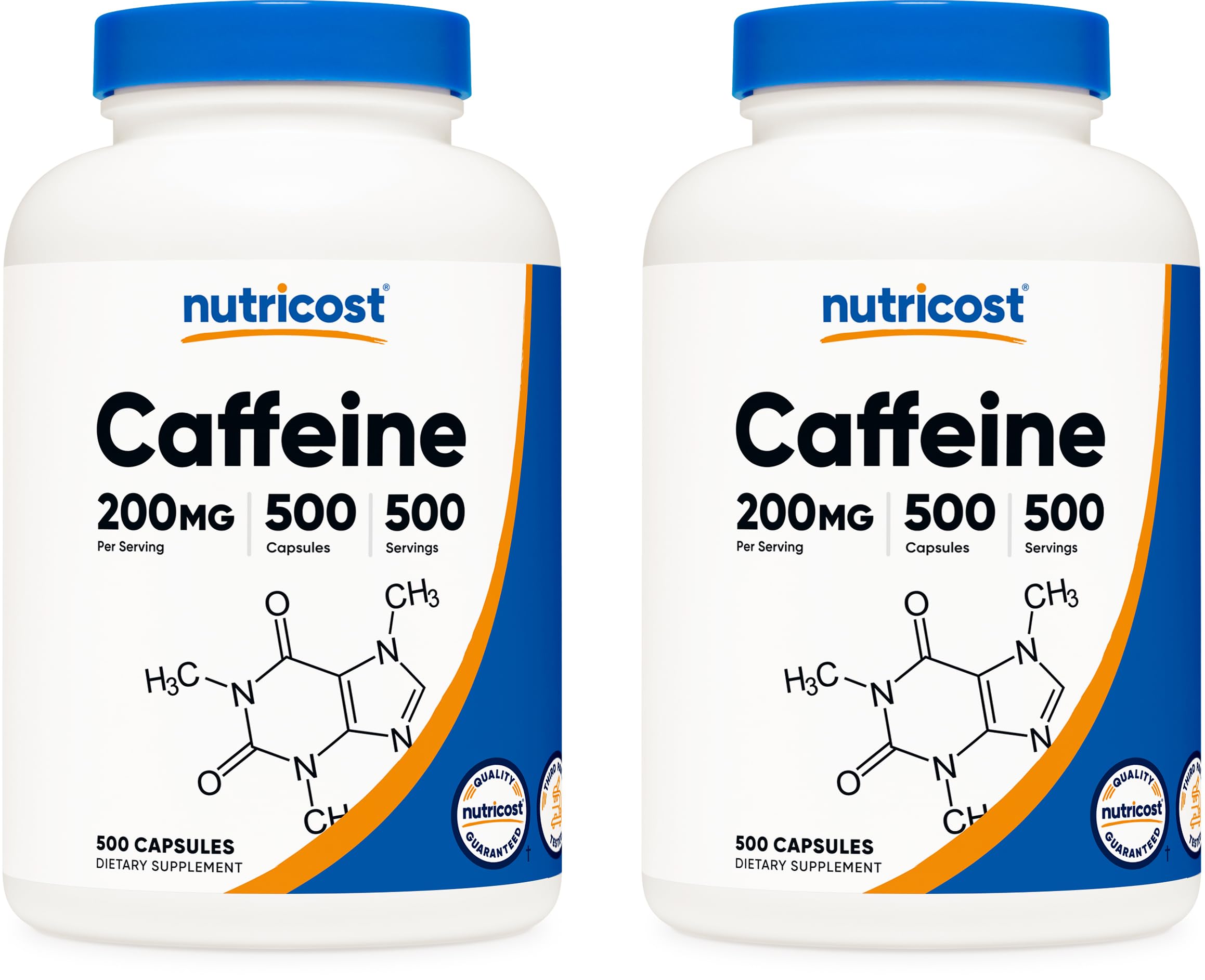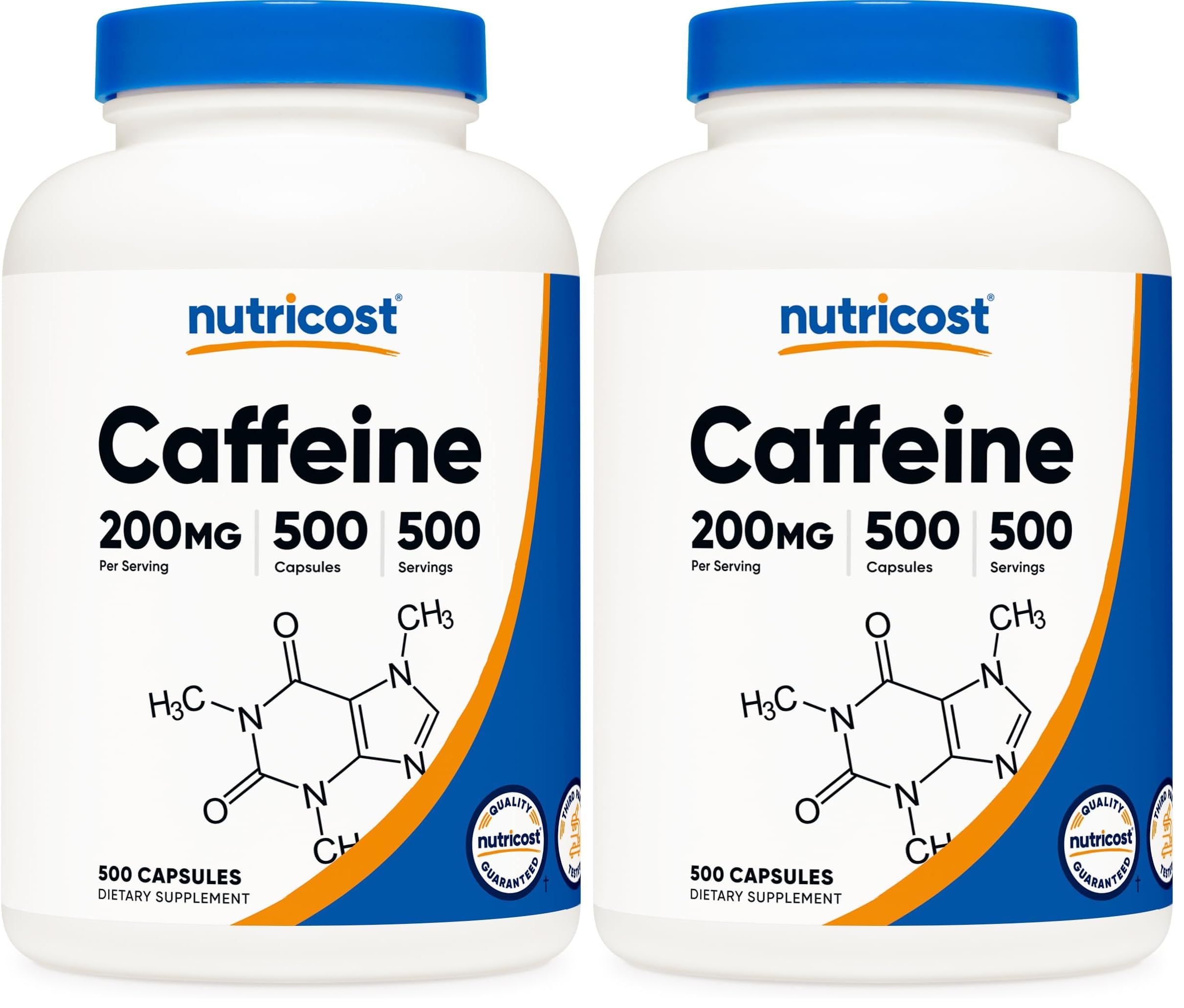 Nutricost Caffeine 500 Capsules, 200mg Per Capsule (2 Bottles)