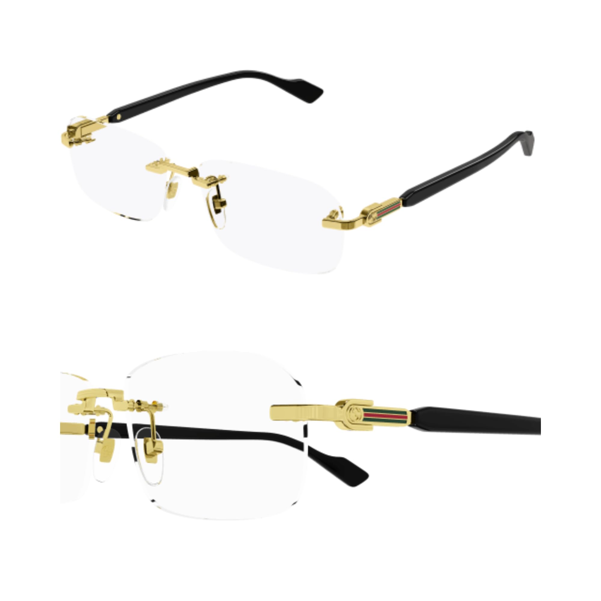 Gucci Rectangular Eyeglasses GG0131O 001 Gold/Black 53mm 131