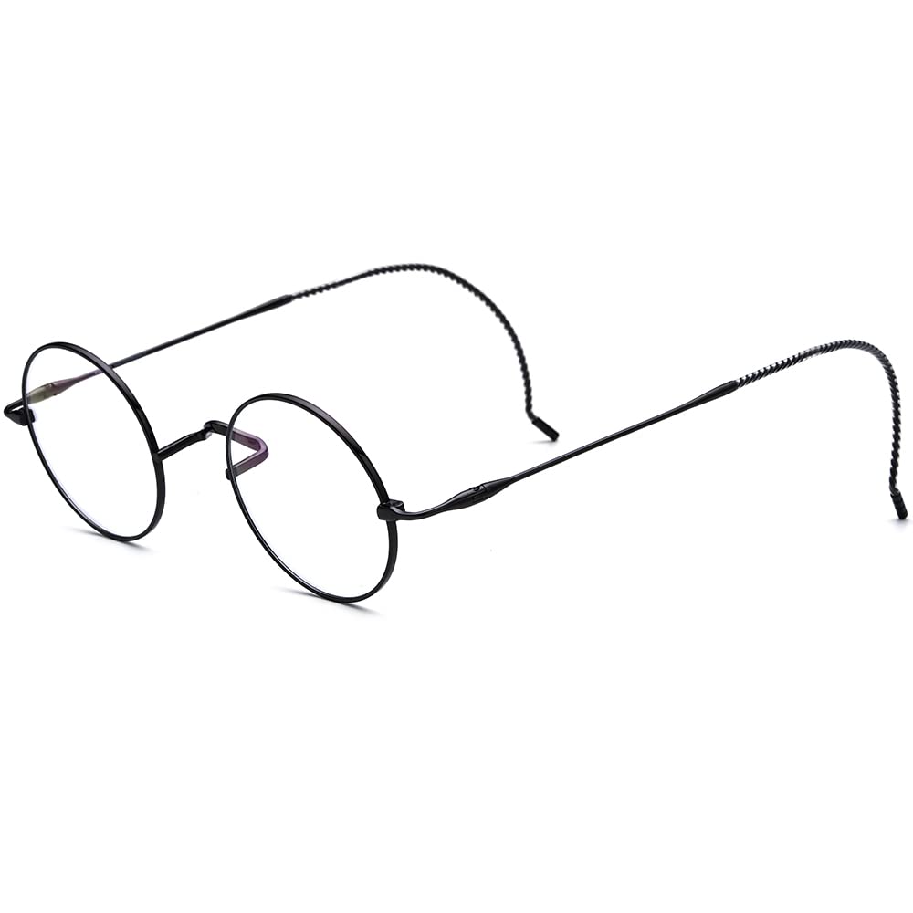 Agstum Pure Titanium Retro Round Eyeglasses Frame without Nose Pads Black, 42mm