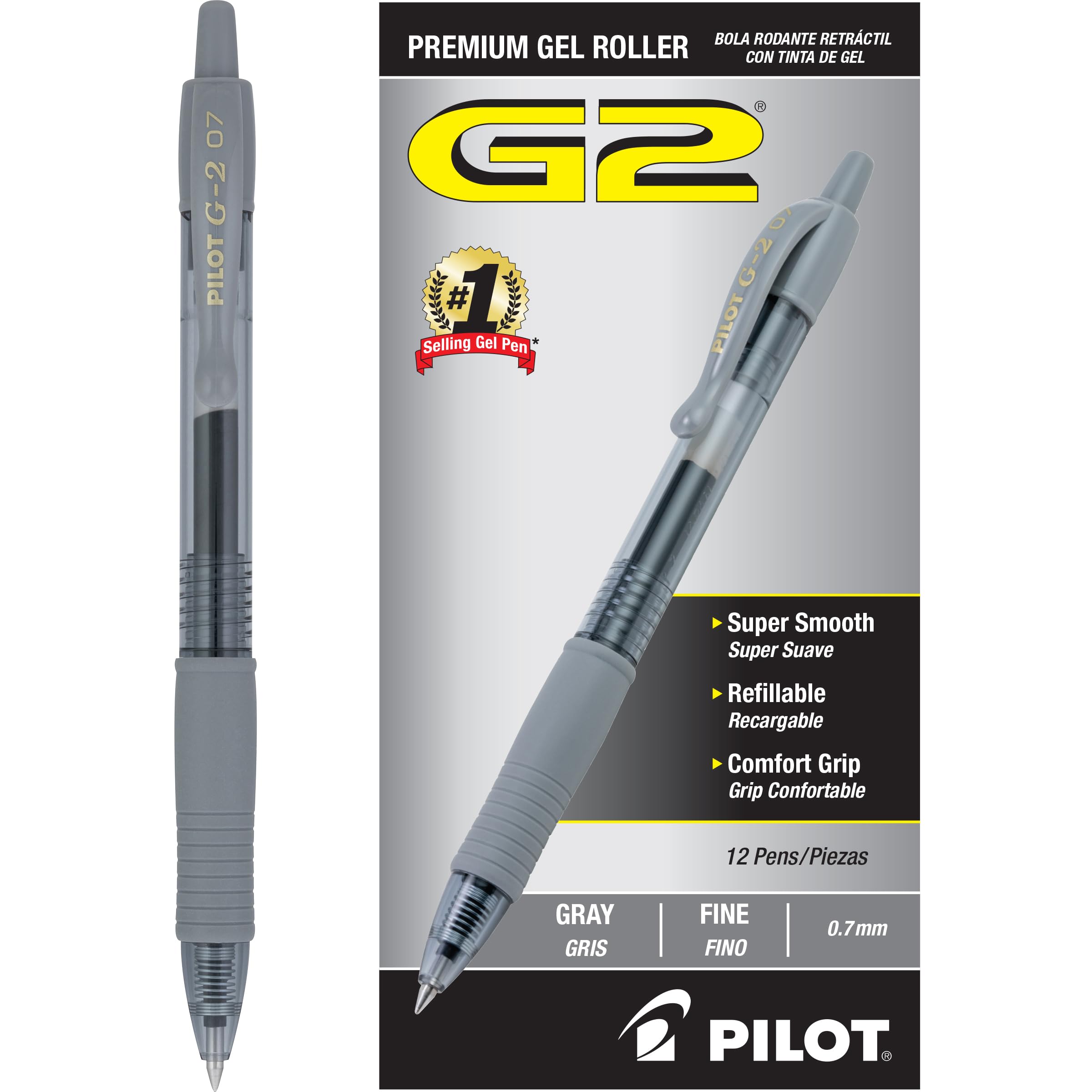 PILOT G2 Premium Gel Ink Pens, Fine Point, Gray Ink, 12 Count (17140)
