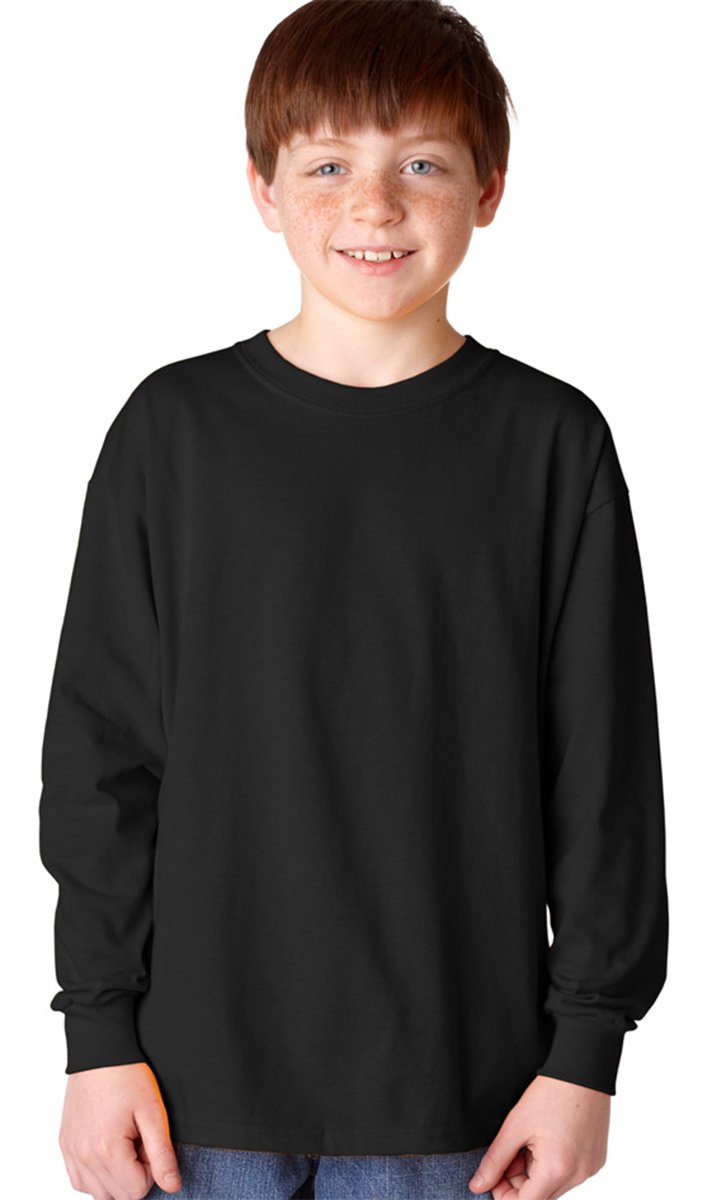 Youth Heavy Cotton Long Sleeve T-Shirt (Black) (Medium)