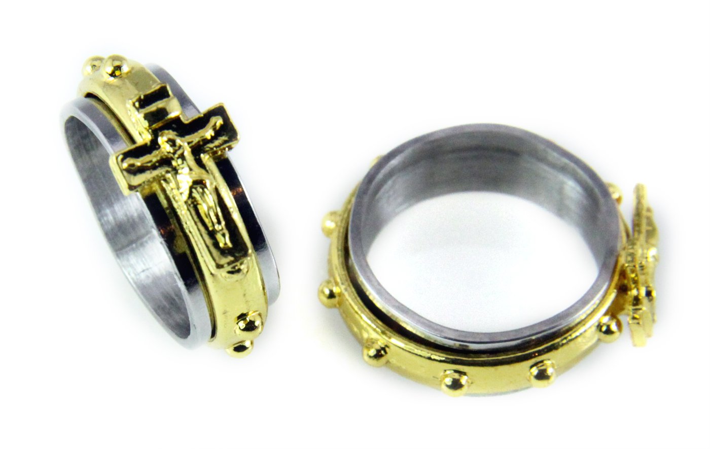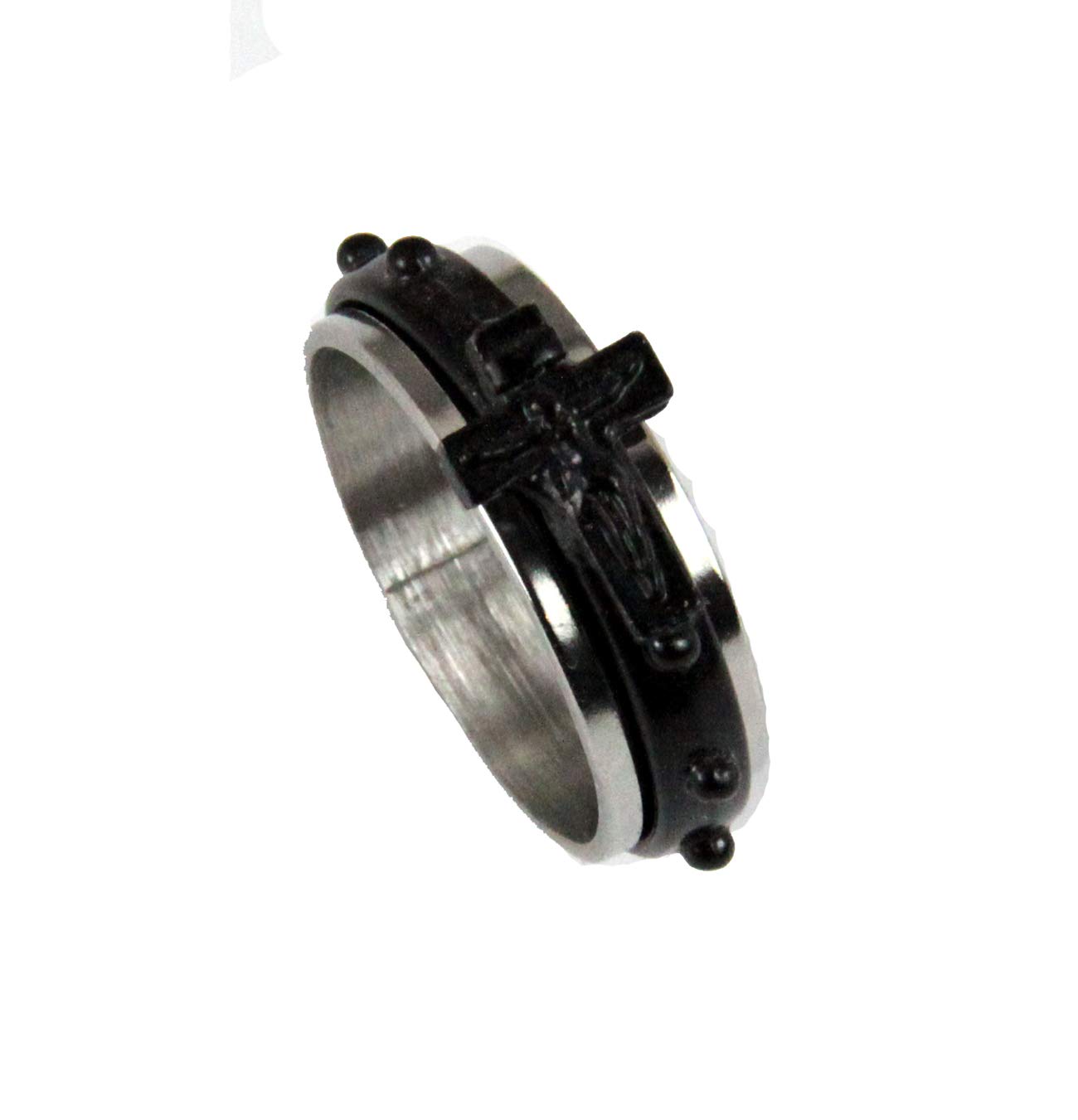 DoubleAccent 6MM Stainless Steel Cross Rosary Spinner Praying Ring, 13