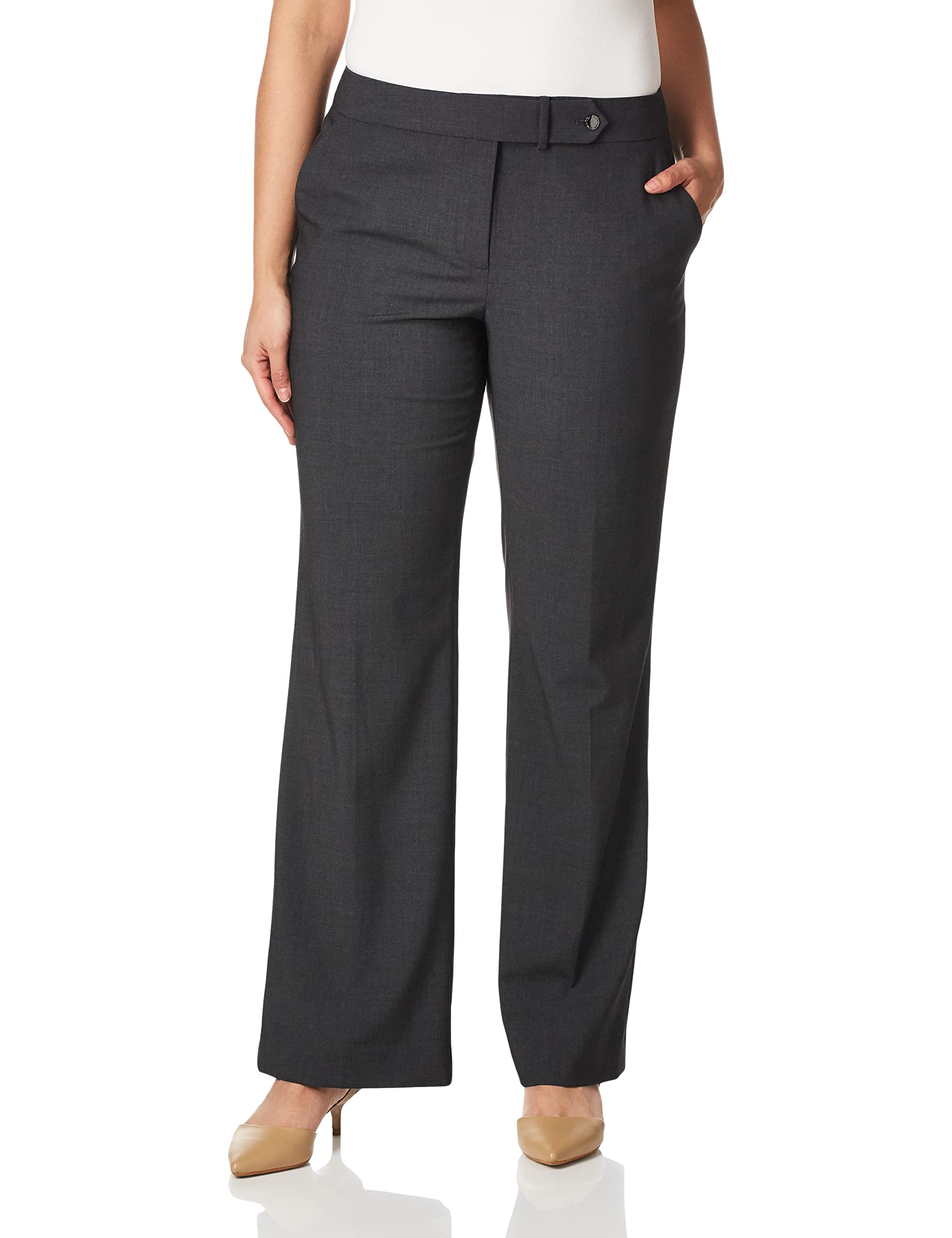 Calvin Klein Women's Classic Fit Straight Leg Lux Suit Pant, Charcoal, 16