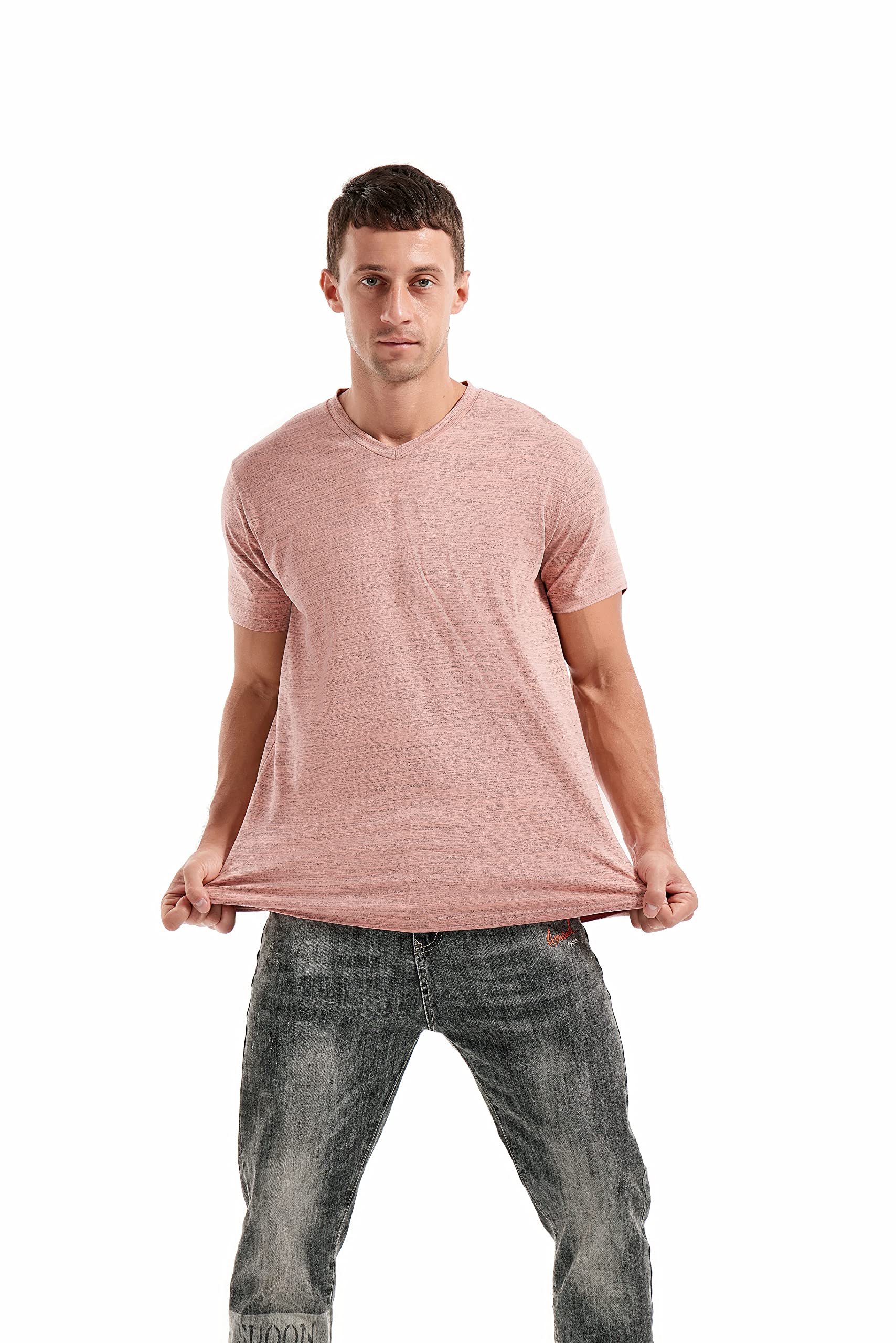 High quality cotton tee. The fabric is very soft. Moderate elasticity. comfortable to wear.