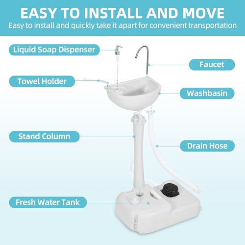 Thoughtful Accessories for Convenience: Our wash basin stand includes a foldable rod for towels and paper roll, and built-in wheels with an easy-to-grip handle for effortless mobility. Every detail is designed to simplify your outdoor experience