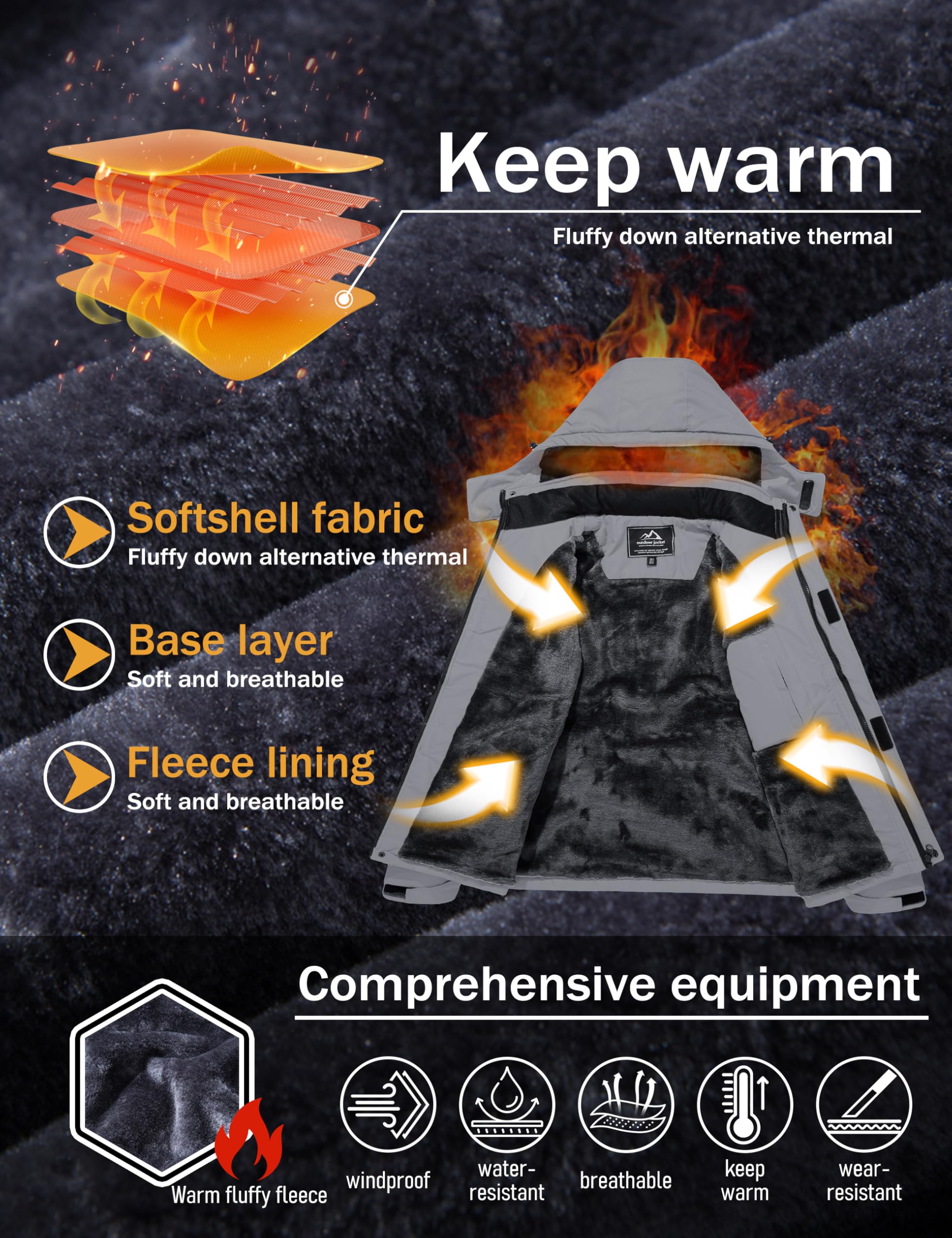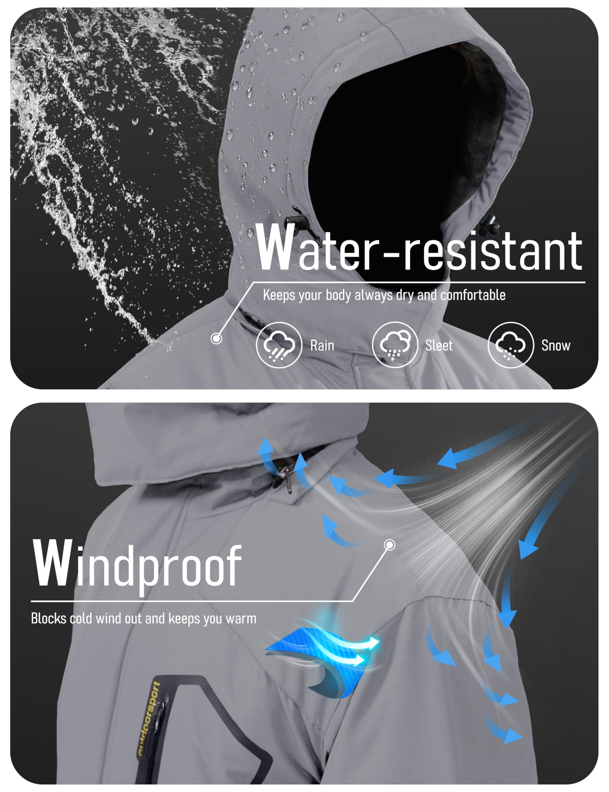 Water Resistant: Professional water resistant jacket, keep your body always dry and comfortable, you won't worry about getting wet while skiing, snowboarding, hunting, hiking in inclement weather