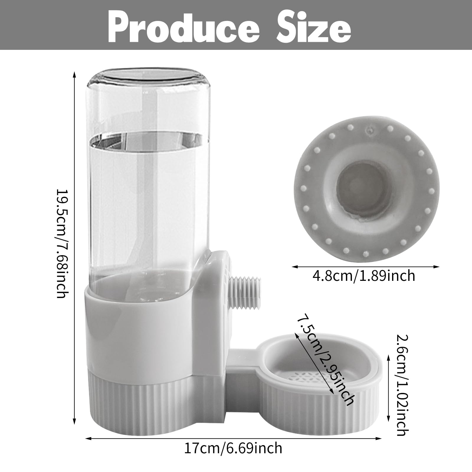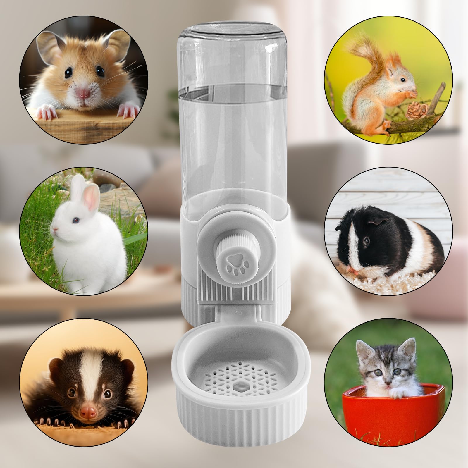 Profect Size for Cage: 7.7''*3.2'' water dispenser can hold up to18 Oz Water. Provides abundant hydration for your pet, eliminating the need for constant refills,great for small animals, such as rabbit, chinchilla, guinea pig, hedgehog, and ferret.