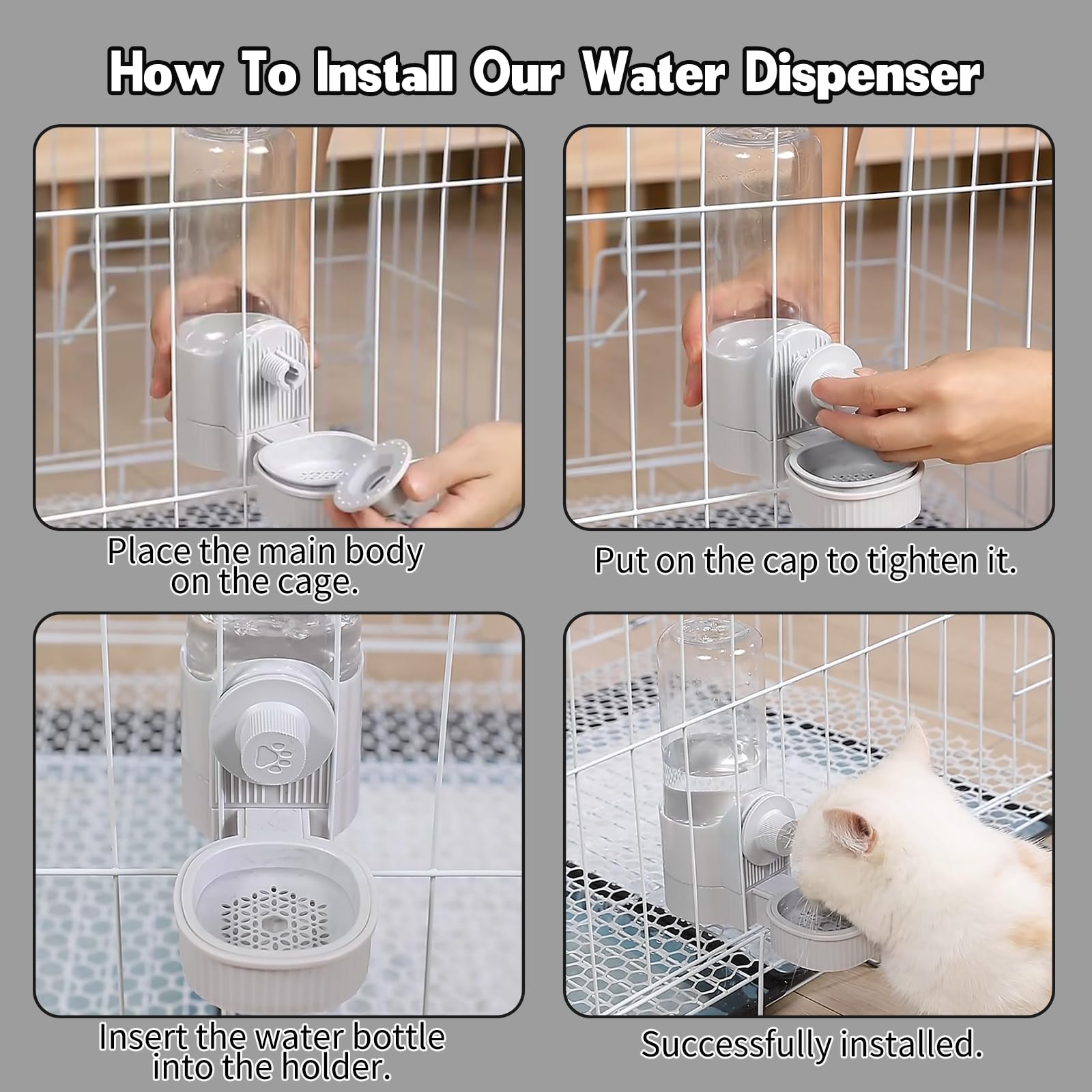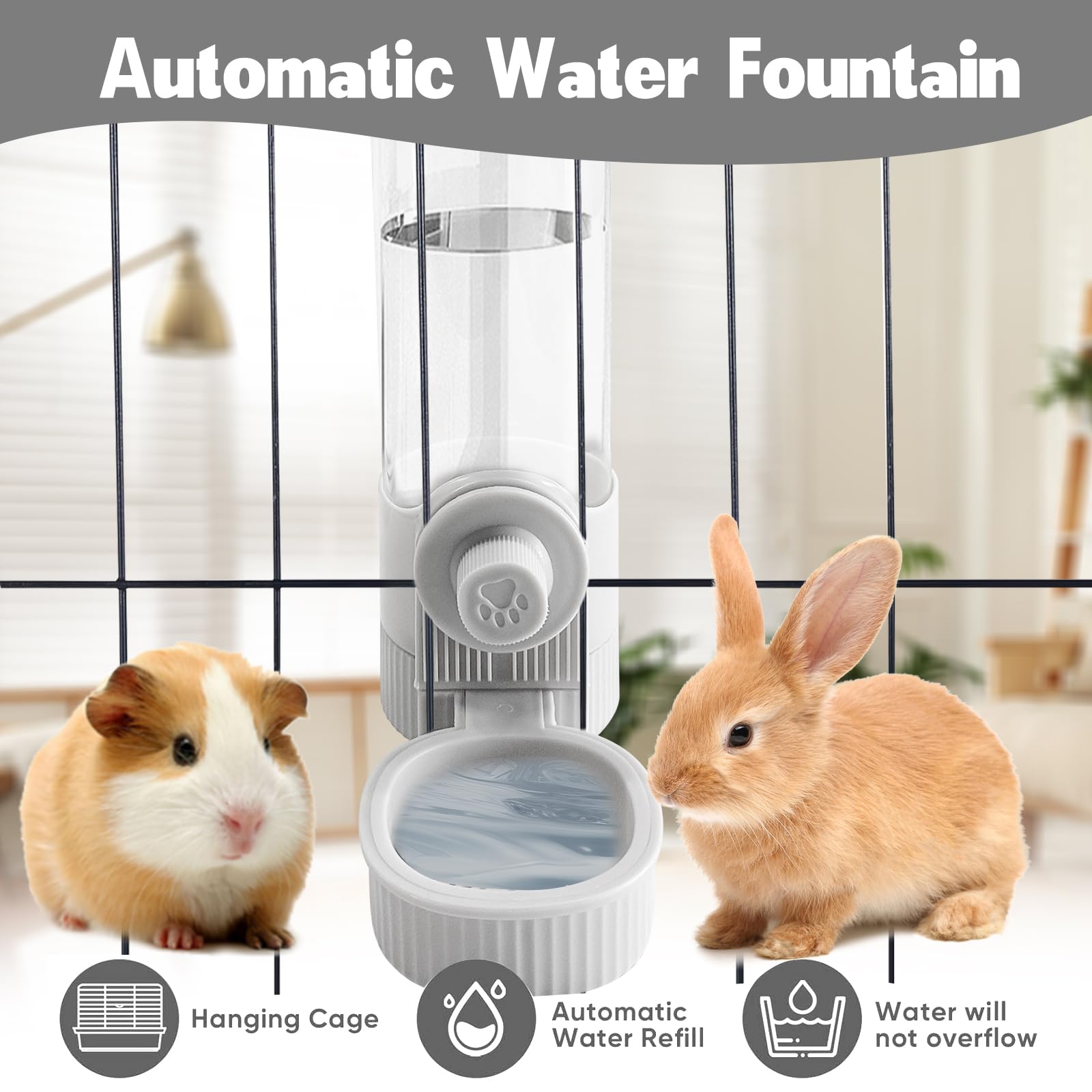 Designed for Cage: This Rabbit Water Bottle is Designed for Cage .The water bottle features a gravity flow siphon design and a hanging water bottle to control water flow and prevent spills. Fix the water bottle at the proper height of the cage, provides your pet with a more comfortable and hygienic drinking experience.
