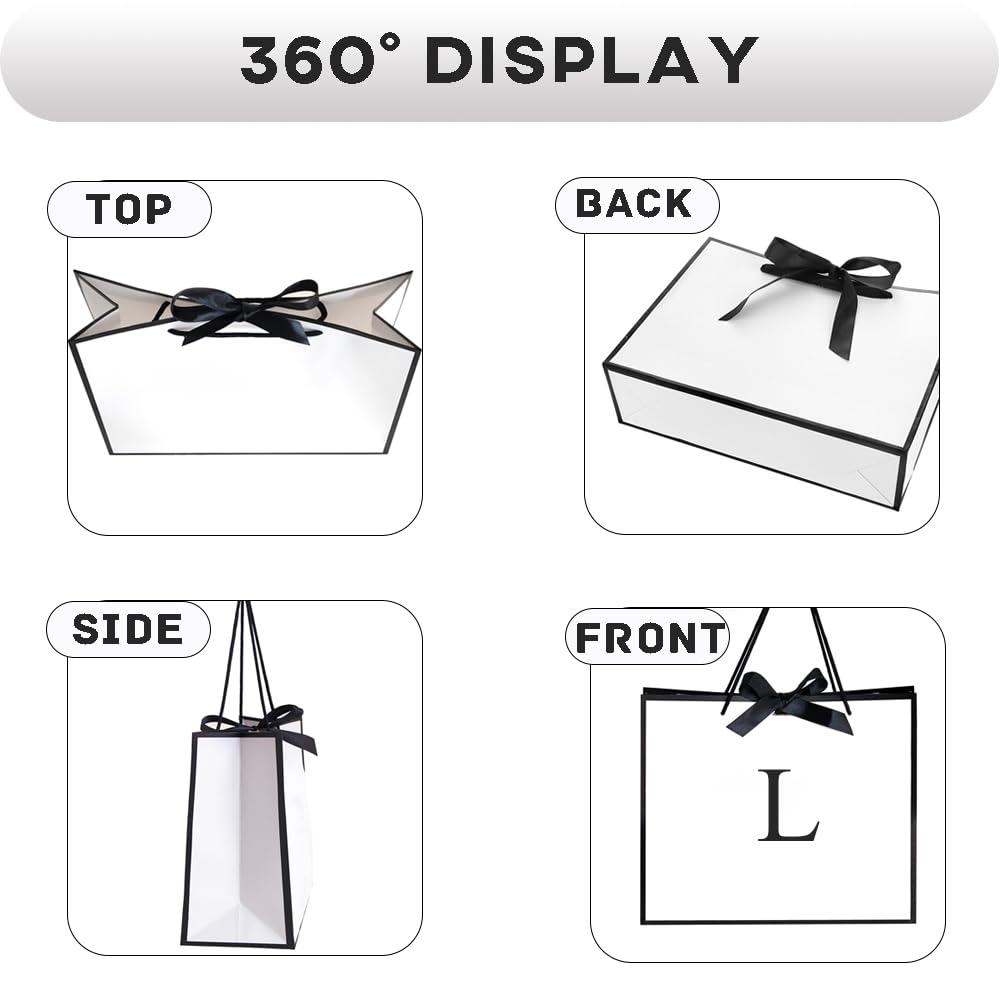 【IDEA GIFT BAGS for WOMEN MEN】Initial gift paper bags are both stylish and practical. Could be as a perfect gifts for teachers appreciation, bride, ladies,gentlemen,bridal shower gifts, mothers day gifts, fathers day gifts,wedding gifts, graduation gifts,birthday gifts for females and males,best friend, wife gifts,husband gifts,bridesmaids, hostess gifts, bride to be gifts, maid of honor, mother and father of the bride/groom, mom,dad,aunt,uncle,girlfriend,boyfriend,brother and sister,etc.