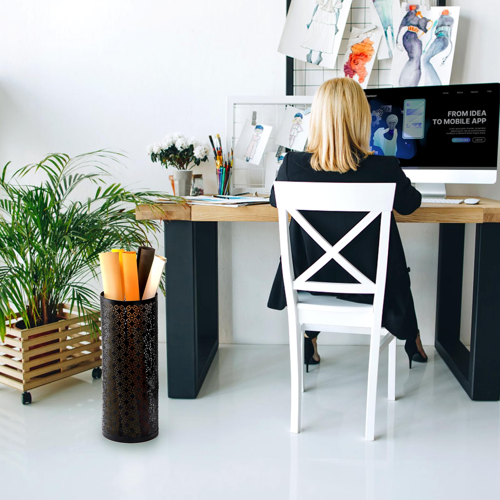 Hollow-out Design: Hacaroa metal umbrella stand with hollow-out design looks beautiful, ensuring good ventilation and making your umbrella breathe freely.