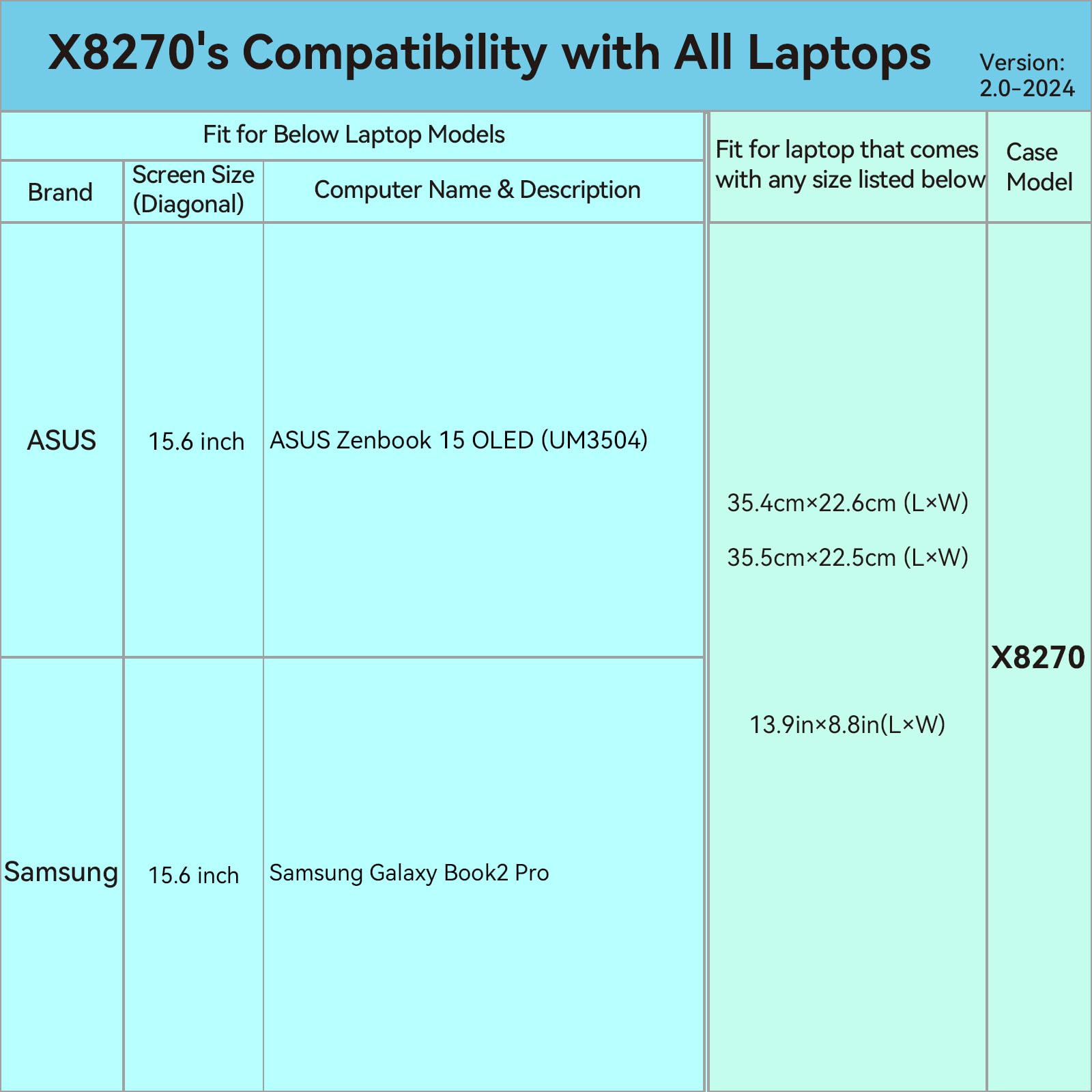 Compatibility: designed to perfectly fit for 15.6 inch Samsung Galaxy Chromebook Plus; 15.6 inch Samsung Galaxy Book2 Pro; 15 inch LG gram; 15.6 inch LG gram; 15.6 inch LG gram SuperSlim OLED; 15.6 inch ApoloSign NJP1561P