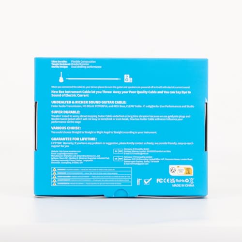 [Low Noise High Fidelity] New bee guitar cord with 22AWG oxygen-free-copper center conductors provides enhanced signal transfer, the PVC insulation material and the high-density stranded copper double shield provide noise rejection for quiet operation